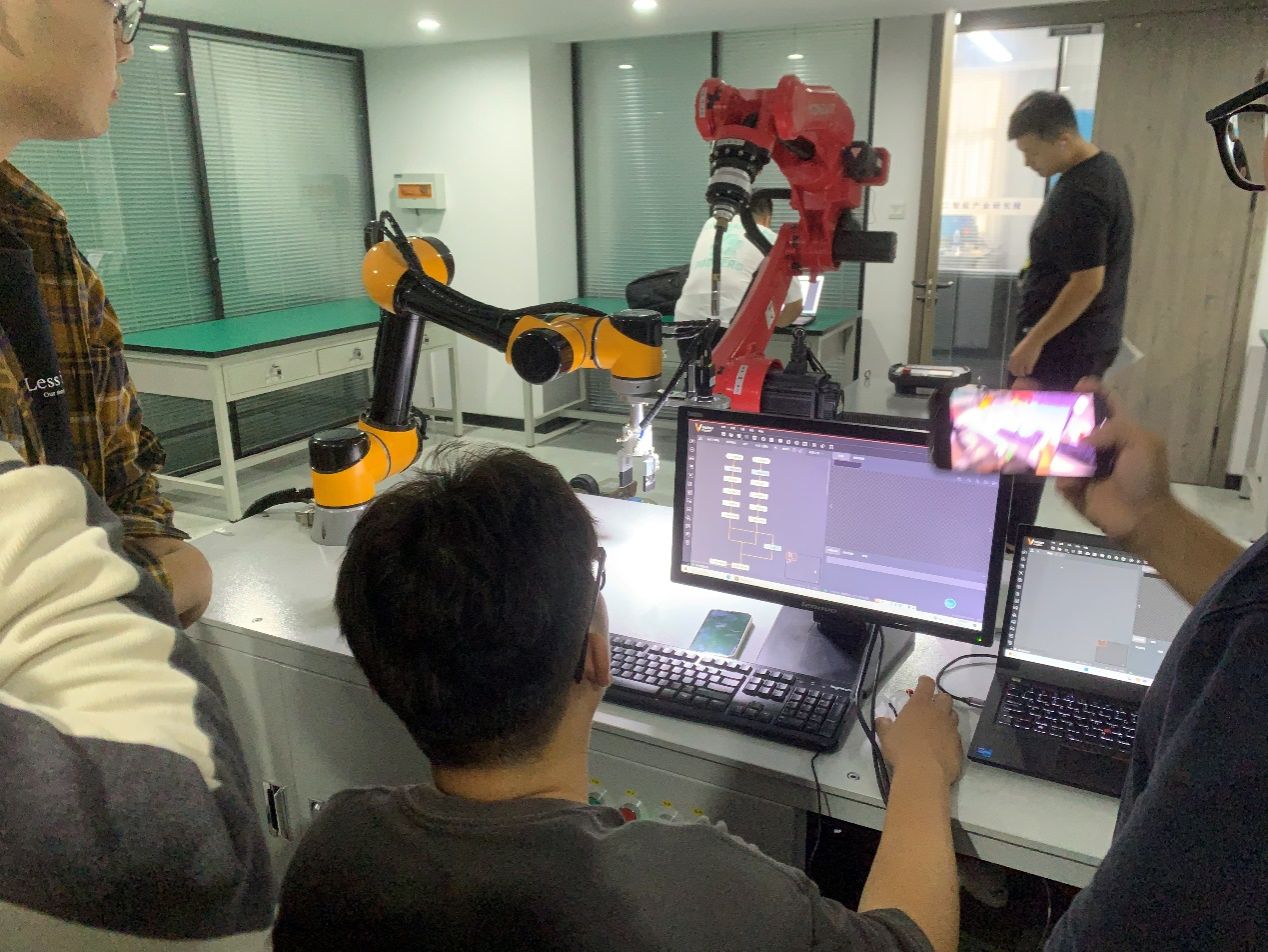 机械优集学院高度重视此次工程实践能力专项提升培训系列活动。培训活动由院长周临震统筹,安排专班人员分别负责西伏河与盐龙湖相关实验室培训。培训时间从10月14日开始,采用线上与线下相结合的方式,利用研究生与青年博士教师的课余时间灵活开展培训。培训内容涉及机电装备自动化控制、智能装备系统集成、机器视觉编程开发、工业机器人编程应用、协作机器人编程应用、AGV调度与虚拟仿真、多机器人协同控制开发、智能传感数据采集、数字化产线虚拟仿真,以及多物理场仿真、流体力学仿真、机电系统建模仿真等多款CAE仿真软件培训。此次培训共吸引机械优集学院近3年引进的青年博士教师21人,在校研究生120余人参加。