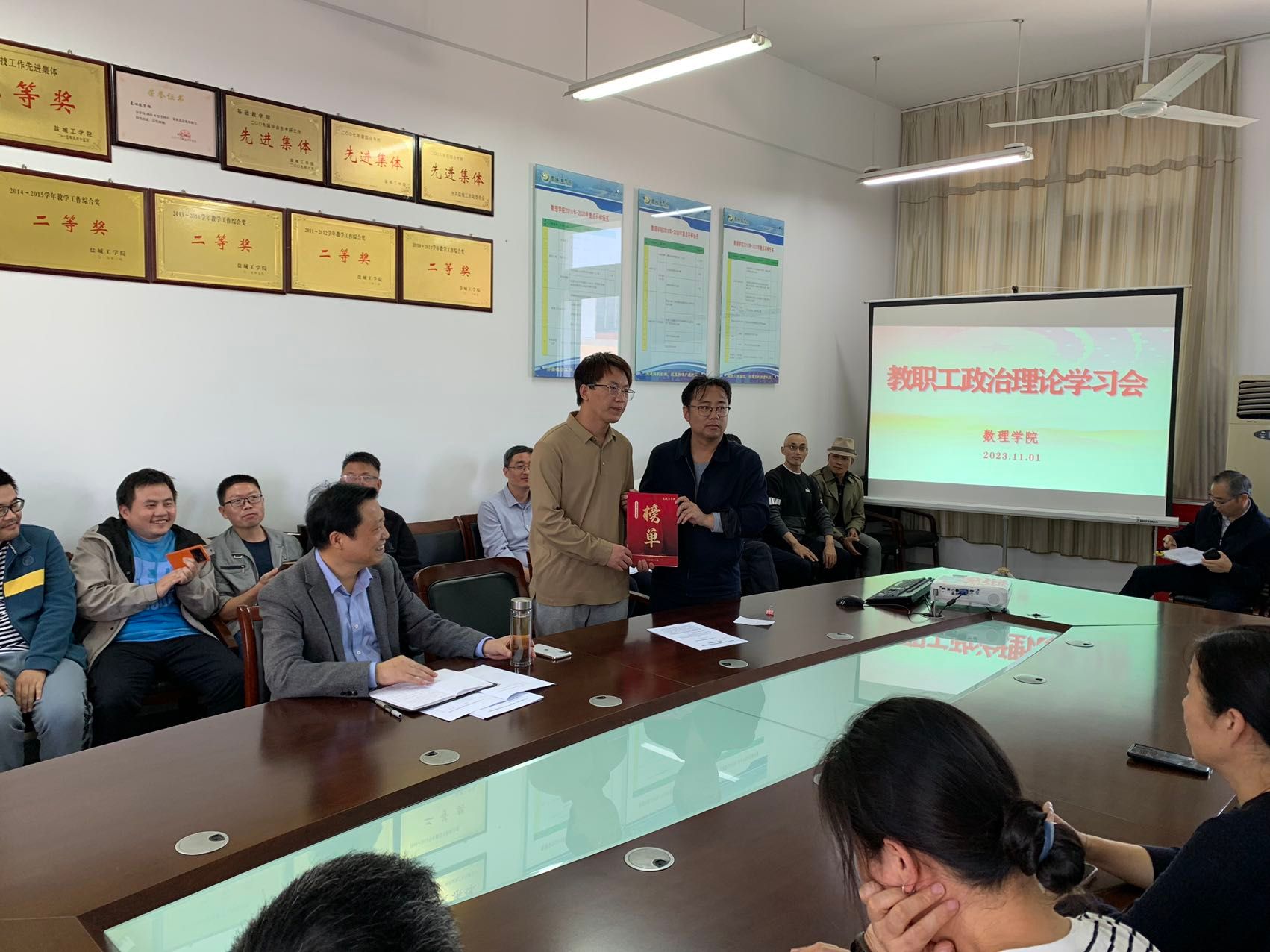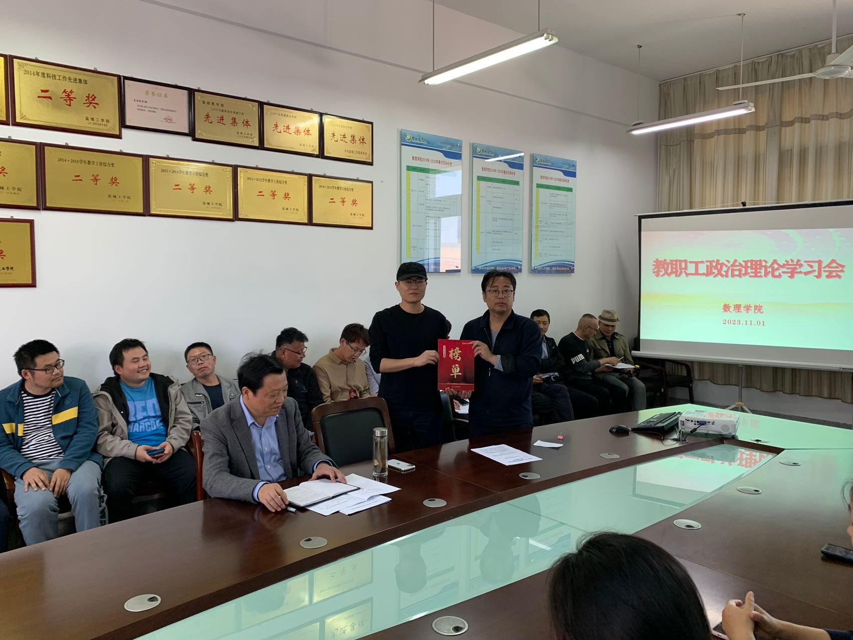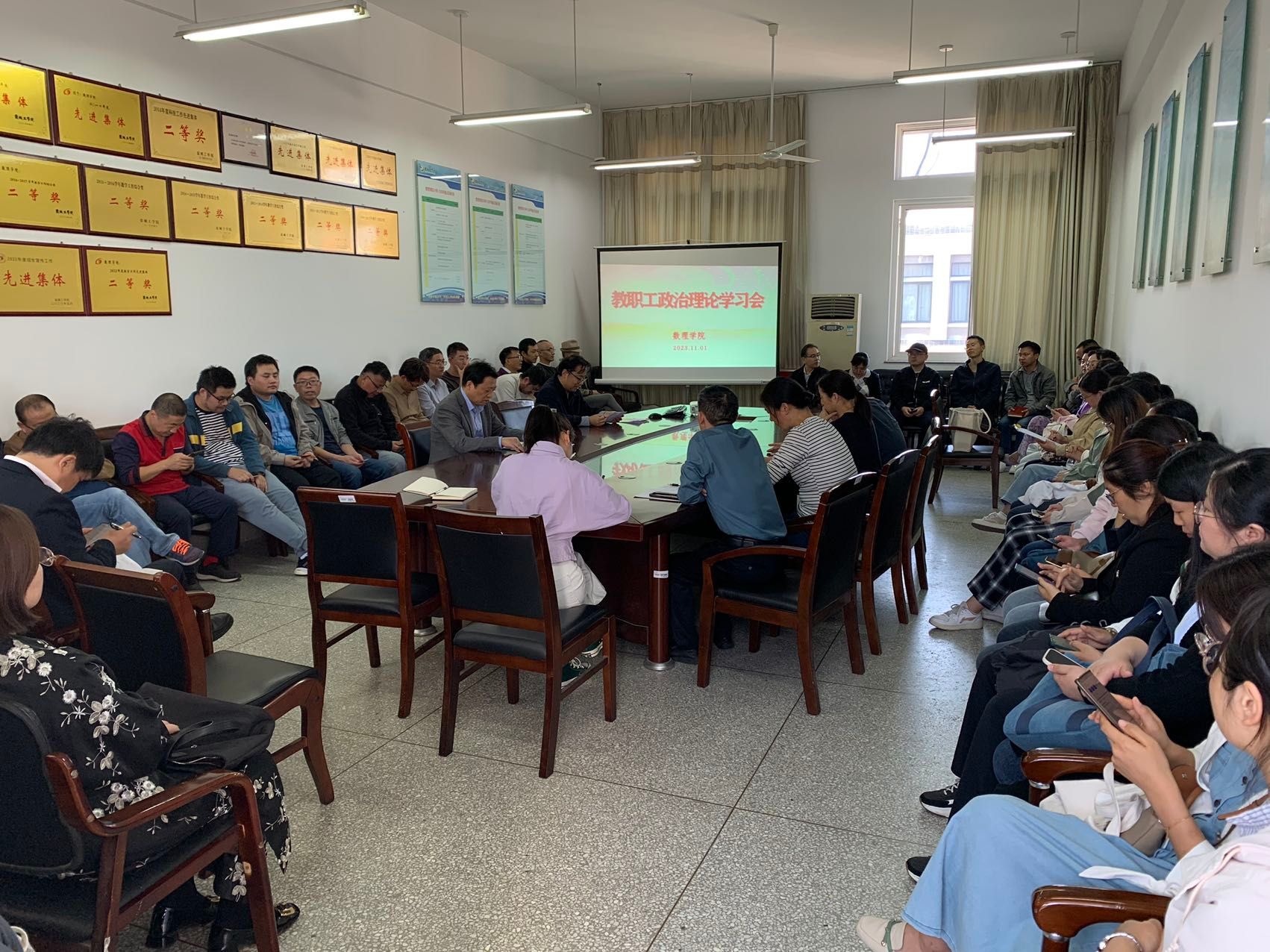 11月1日下午,在希望大道校区博学楼B512会议室,数理学院组织开展教职工政治理论学习,院长薛长峰主持,全体教职工参加。