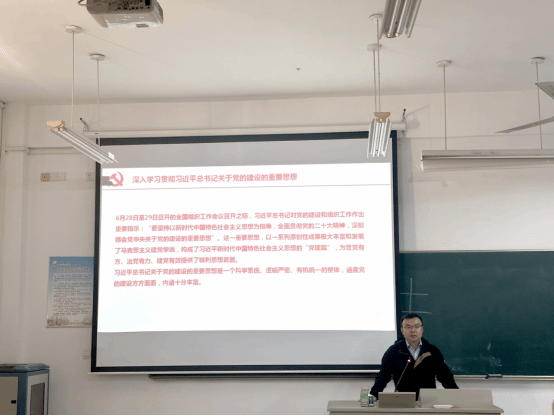 杨士卿以“深入学习领会习近平总书记关于党的建设的重要思想,落实全面从严治党要求,为学院事业高质量发展提供坚强政治保证”为题作领学发言。他指出,这一重要思想的科学内涵集中体现在“十三个坚持”,是习近平新时代中国特色社会主义思想的“党建篇”,是加强党的建设的总遵循、总依据、总指引。他强调,要更加全面认识把握党和国家发展大局大势,更加清楚认识到党的建设的法宝作用,更加自觉地坚持为党育人、为国育才,着手推动解决制约学院立德树人成效的瓶颈和问题,加快推进“三全育人”工作格局。