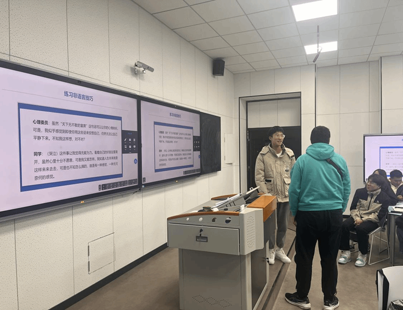 心理健康技能讲座中,学院王艳净老师从工作职责、岗位要求、助人技巧三个方面进行讲解,运用生动的案例和微型情景剧,提醒班级班委认识自身责任,引导班委做好班级心理健康知识宣传,指导大家开展班级心理健康活动,帮助大家提高服务同学的能力。