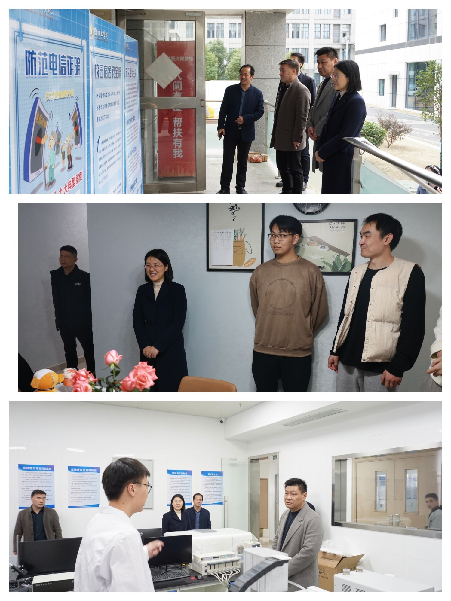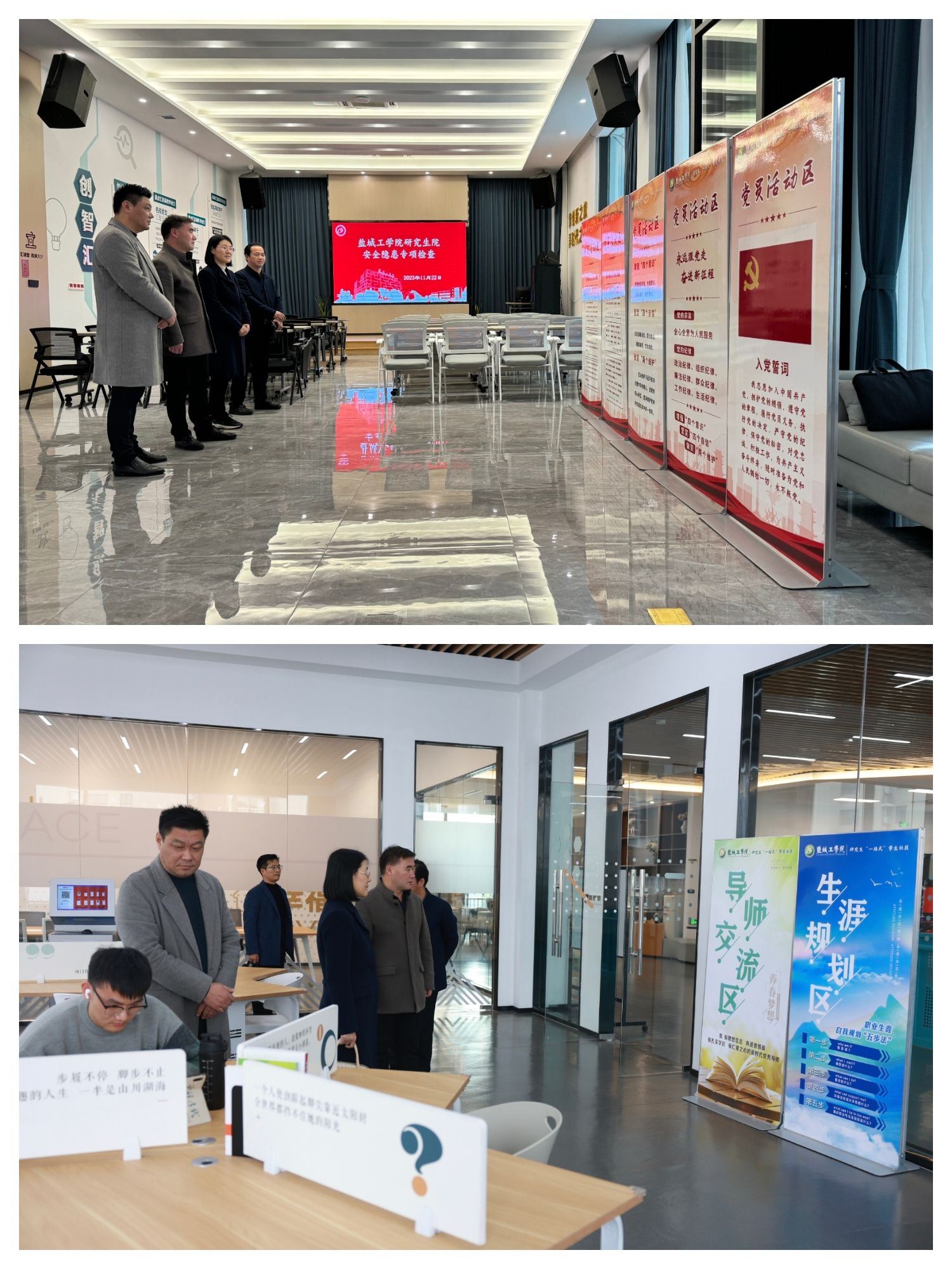 安全检查小组分别对汇文公馆学生宿舍区,共享中心休闲区,盐龙湖教学楼实验室、教室等重点区域的安全情况进行了全方位的检查,排查可能存在的安全隐患,找出存在的问题,列出问题清单并提出相应整改措施。