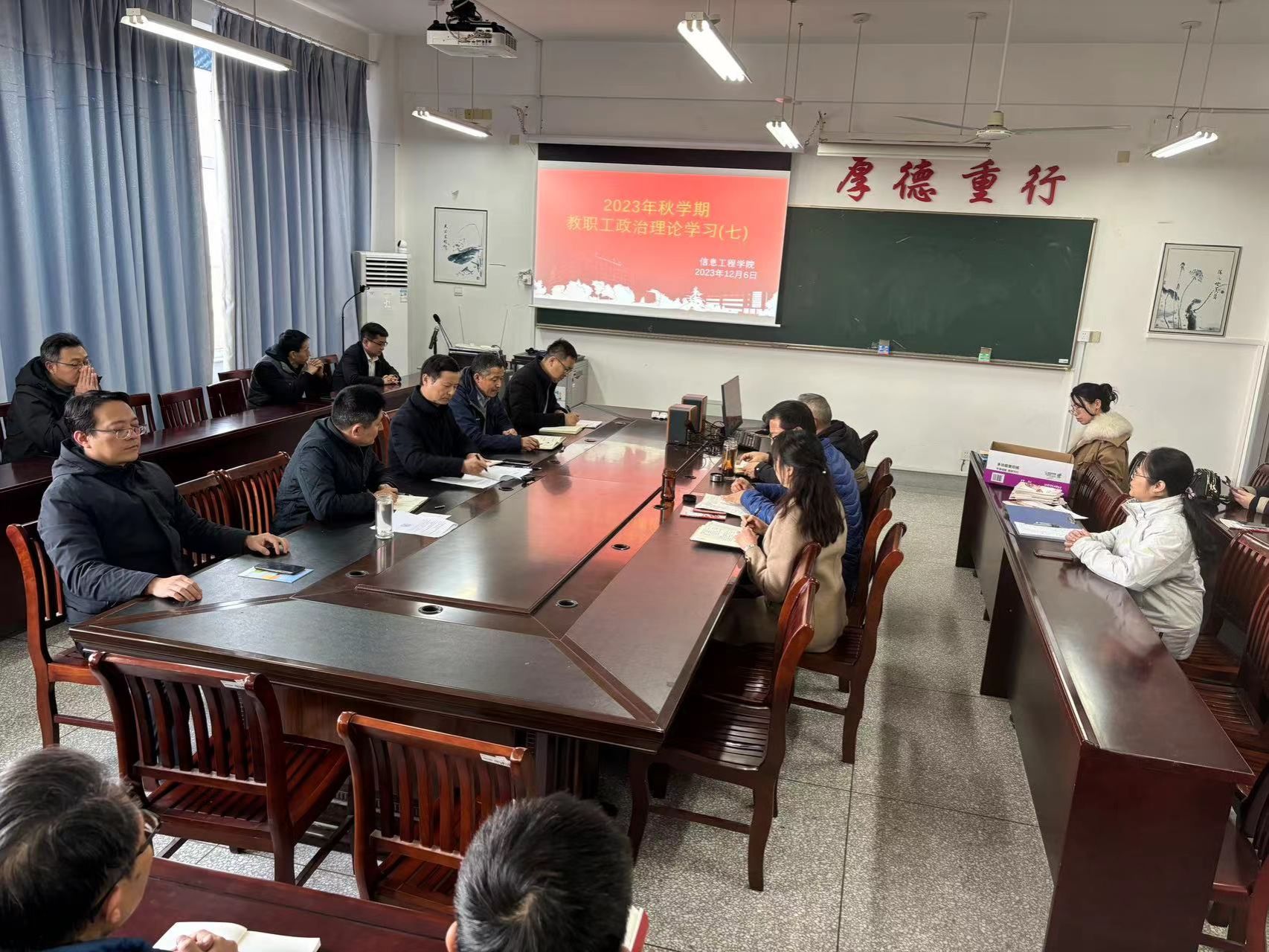 12月6日下午,信息学院在希望大道校区怀德楼B410会议室开展秋学期第七次教职工政治理论学习,学院党委书记王爱军作专题党课,学院近80位教职工参加活动。