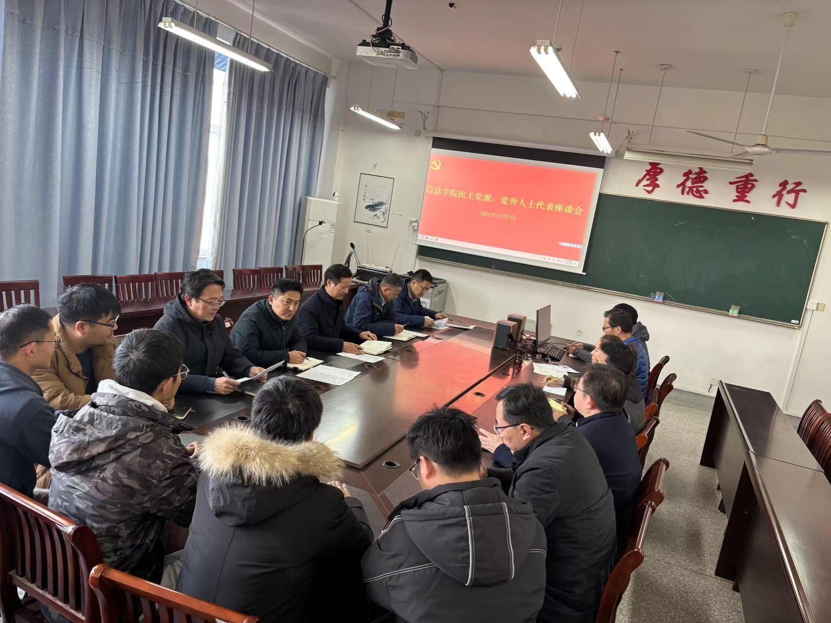 为加强与民主党派、党外人士的联系和交流,12月7日下午,信息学院在南校区怀德楼B410会议室召开党外人士座谈会,会议由学院党委书记王爱军主持,学院民主党派和无党派人士代表近20人参加。