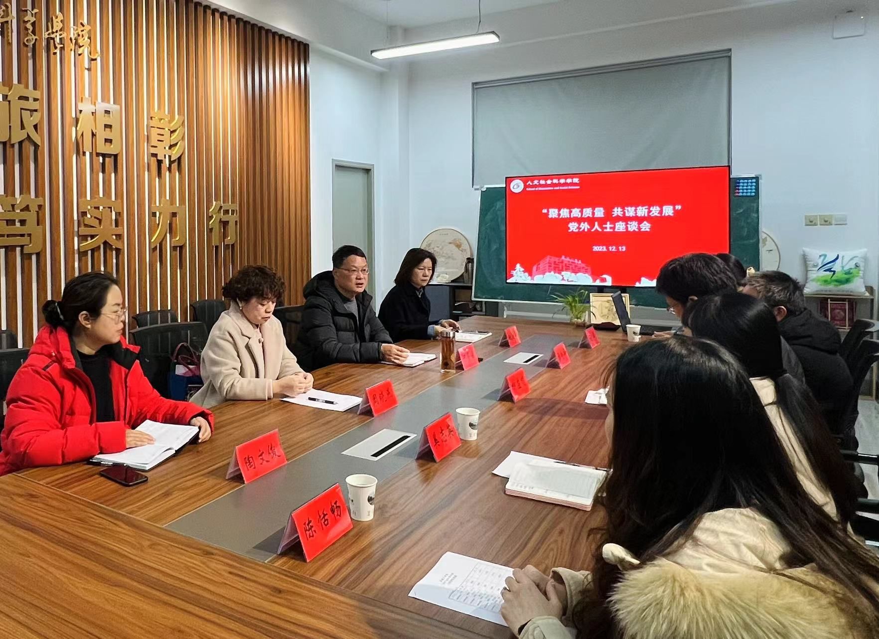 12月13日,在南校区仁和楼A302会议室,人文学院党总支召开“聚焦高质量 共谋新发展”党外人士座谈会。学院党政领导、各民主党派代表、无党派人士代表参加。学院党总支书记何登溢主持会议。