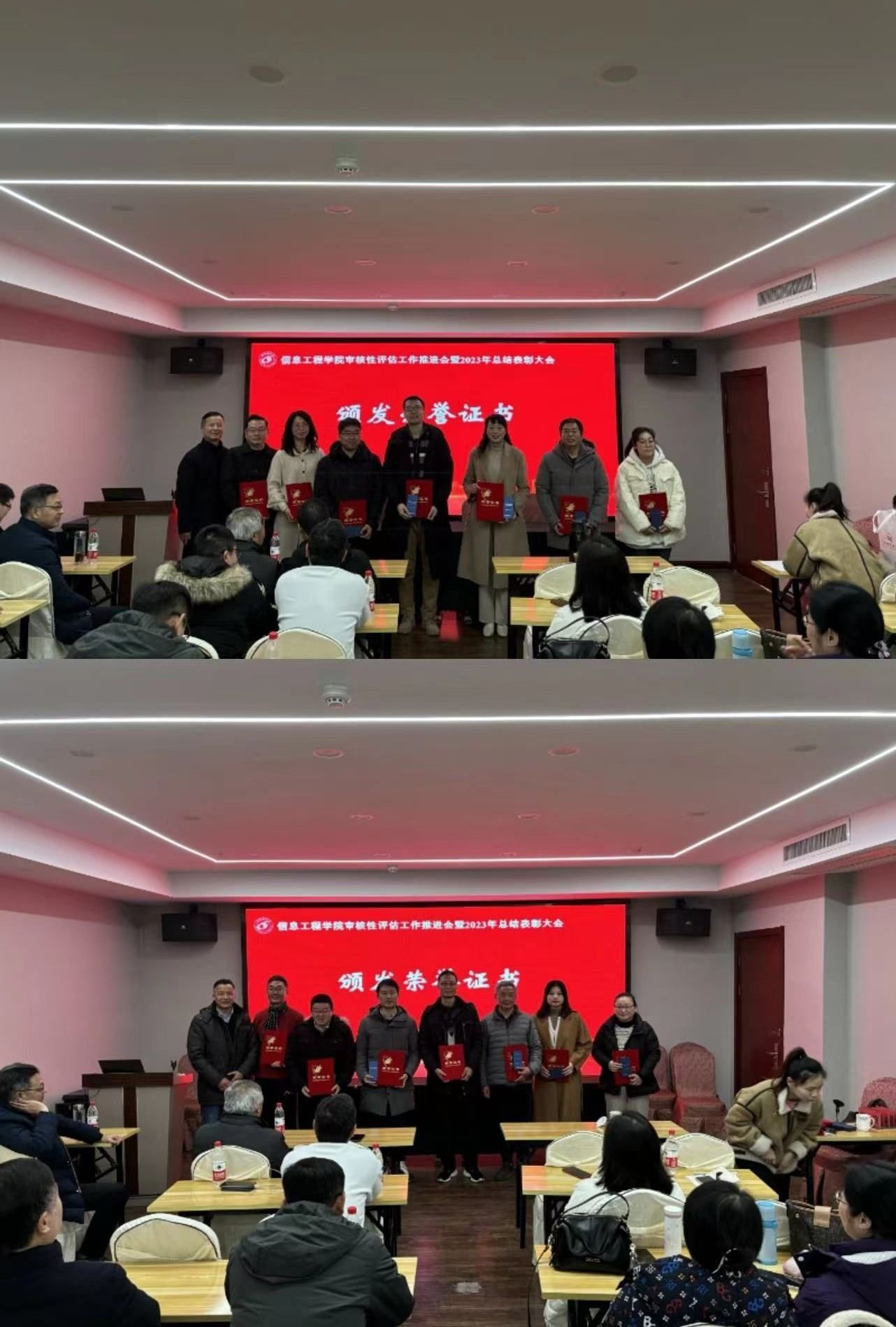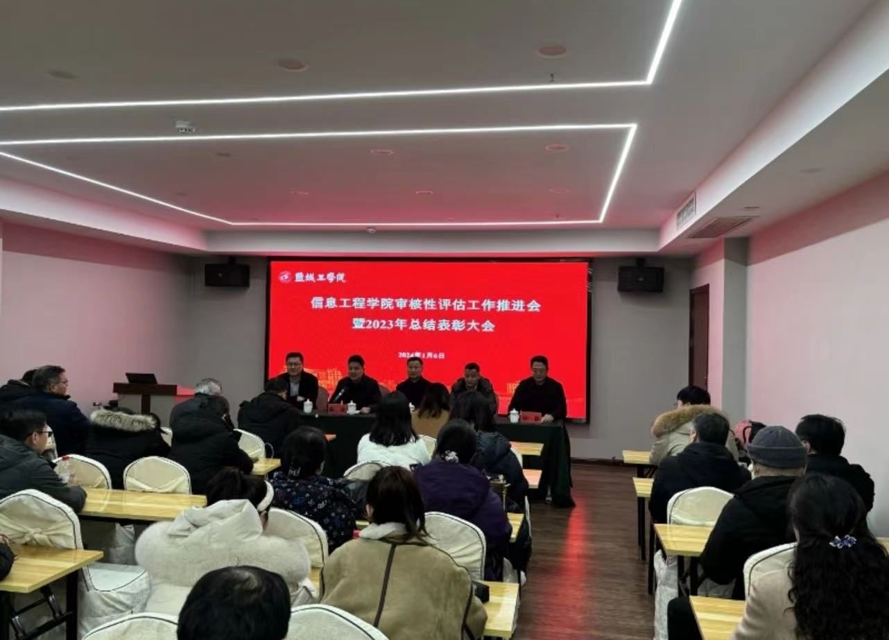 为了深入贯彻《盐城工学院本科教育教学审核评估工作方案》,全面总结2023年度学院工作成效,有序推进审核评估各项任务,并对表现突出的个人进行表彰,信息学院于1月6日下午隆重召开审核性评估工作推进会暨2023年度总结表彰大会。本次大会以“信息有我,我为信息”为主题,由学院党委副书记戴建主持,并得到全院教职工的积极参与。