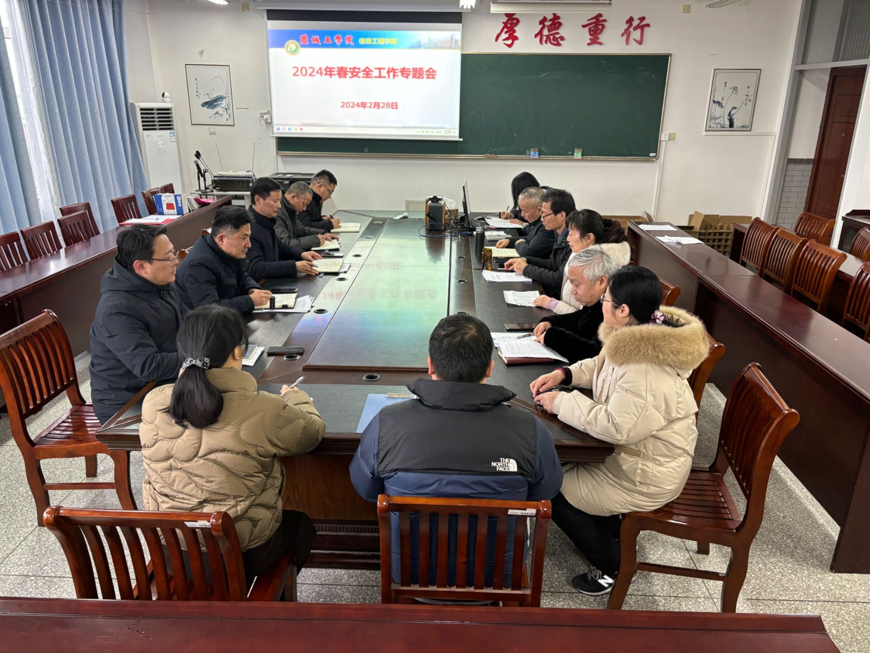 2月28日下午,信息工程学院在怀德楼B410召开安全工作专题会议。学院党委书记王爱军主持会议,学院理论学习中心组全体人员参加。