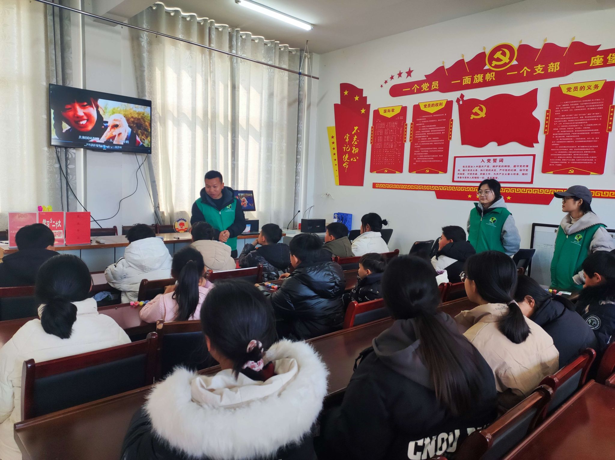 在兴盛村和头厂村党群服务中心,志愿者们向当地青少年儿童和社区居民分发湿地生态保护宣传手册,普及湿地生态保护知识;同时,志愿者们结合PPT和视频,详细介绍了盐城丰富的湿地自然资源情况,生动讲述了共和国第一位环保烈士徐秀娟为盐城湿地生态保护献出年轻生命的感人故事。
