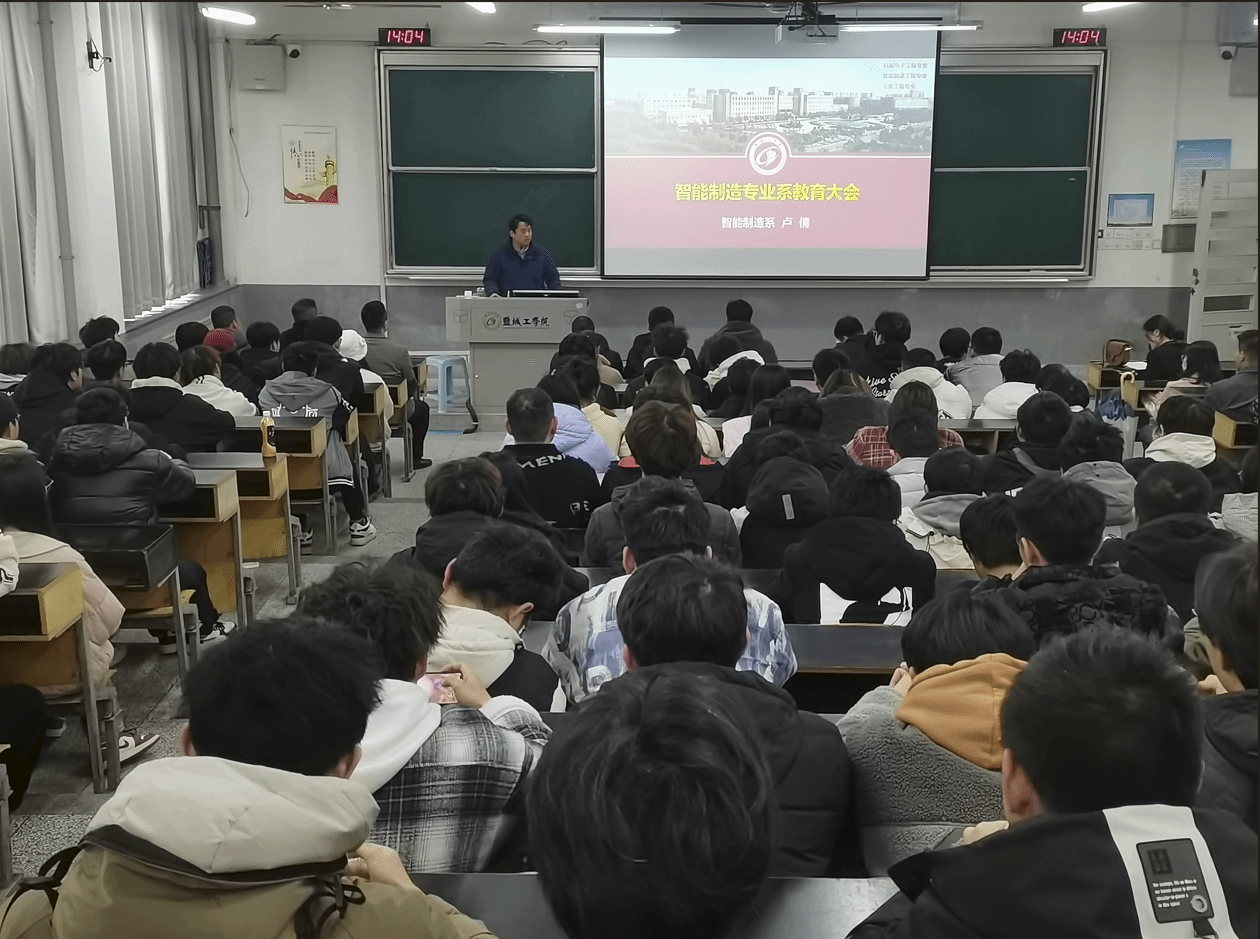 3月27日下午,机械优集学院分别在北校区体知楼105和南校区土木馆报告厅召开智能制造专业系教育大会。智能制造系主任卢倩、副主任王伟,硕士生导师代表曾勇、张本国,学科竞赛办主任侯鹏亮,研究生秘书梁华,青年教师代表周耀武、董善文出席。机械优集学院学工办副主任程云庆主持,机械电子工程专业、智能制造工程专业2022级和2023级本科生近500人参加。