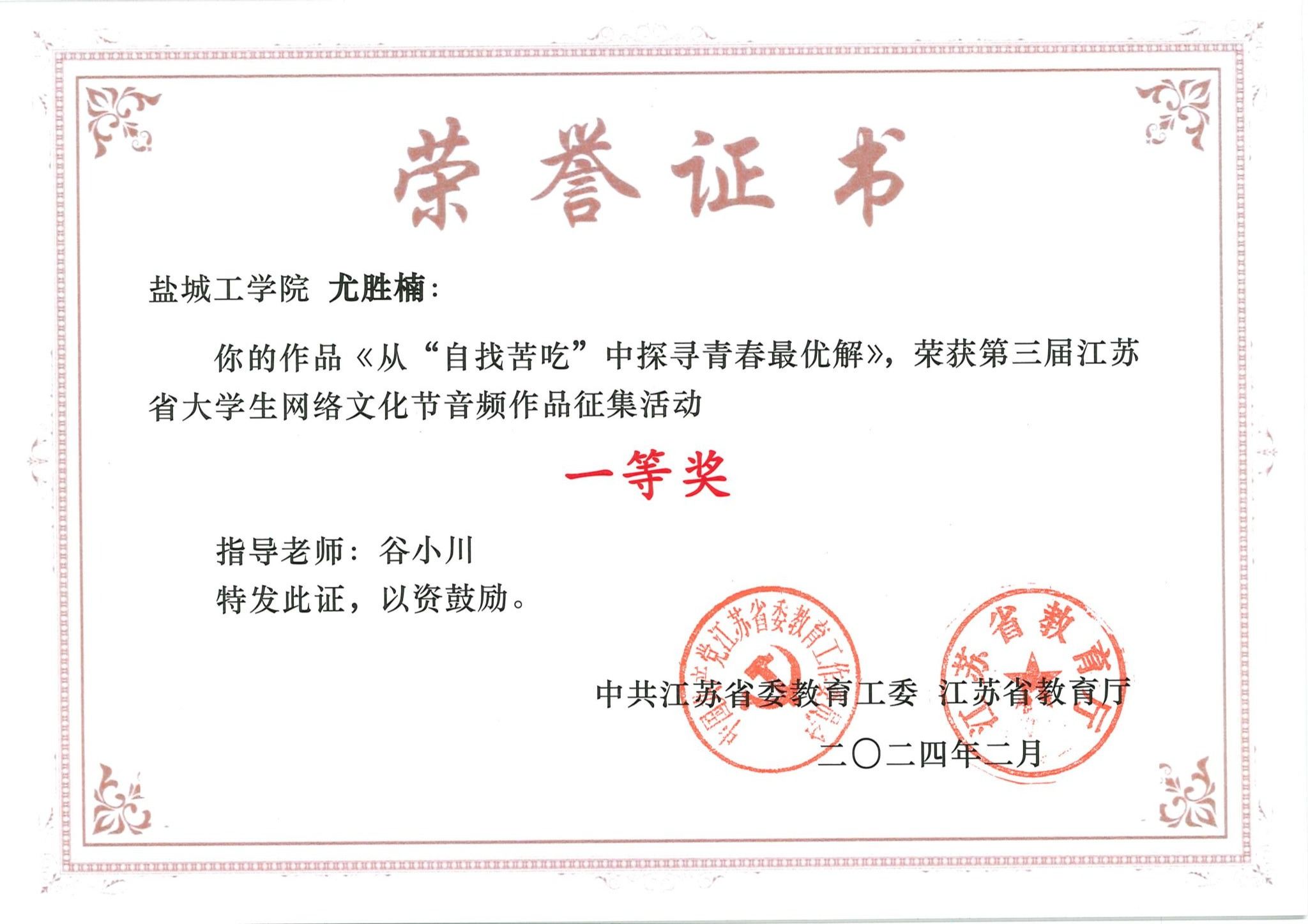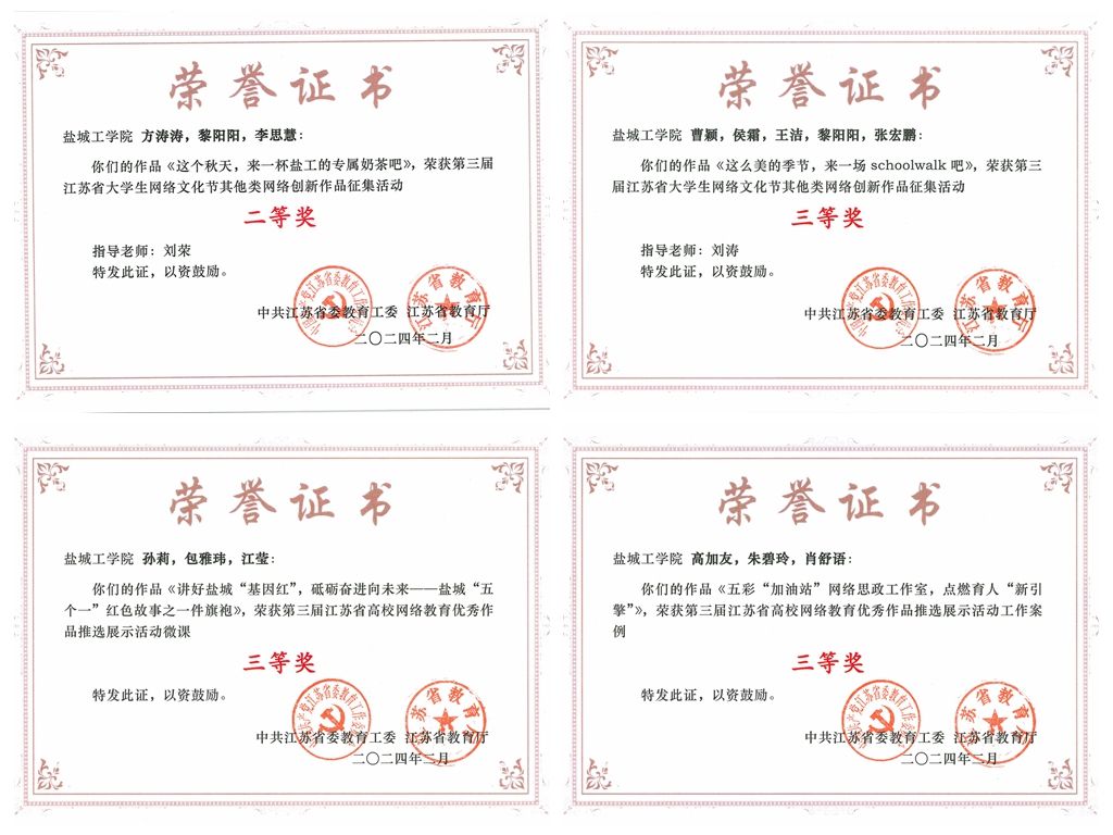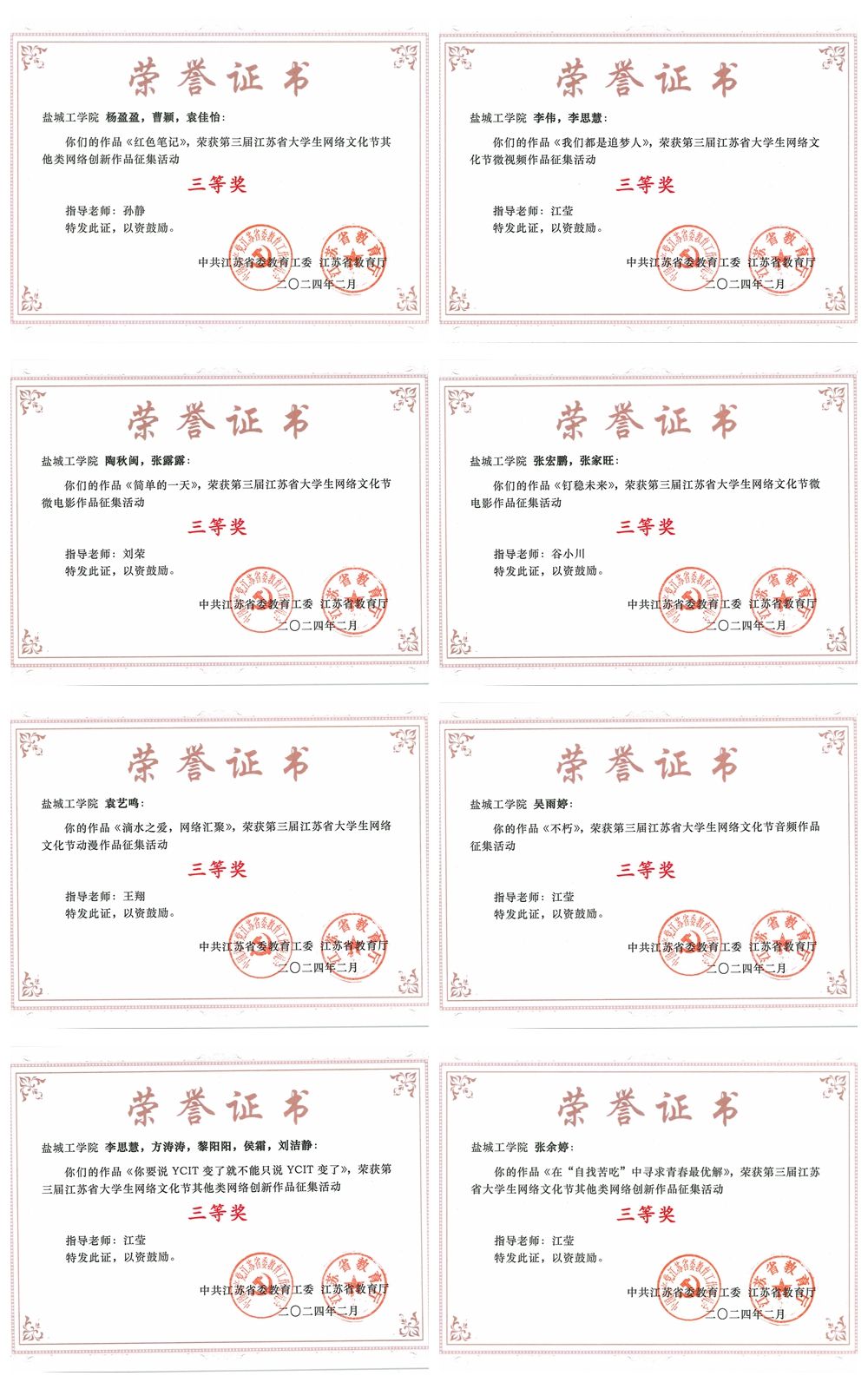 近日,由中共江苏省委教育工作委员会、江苏省教育厅主办,江苏省高校网络思想政治工作中心承办的第三届江苏省大学生网络文化节和高校网络教育优秀作品推选展示活动落下帷幕。经过高校申报、材料初审、专家评审、内容审核等环节,我校师生共获得一等奖1项,二等奖1项,三等奖11项。其中,2件获奖作品被推荐参加第七届全国大学生网络文化节。