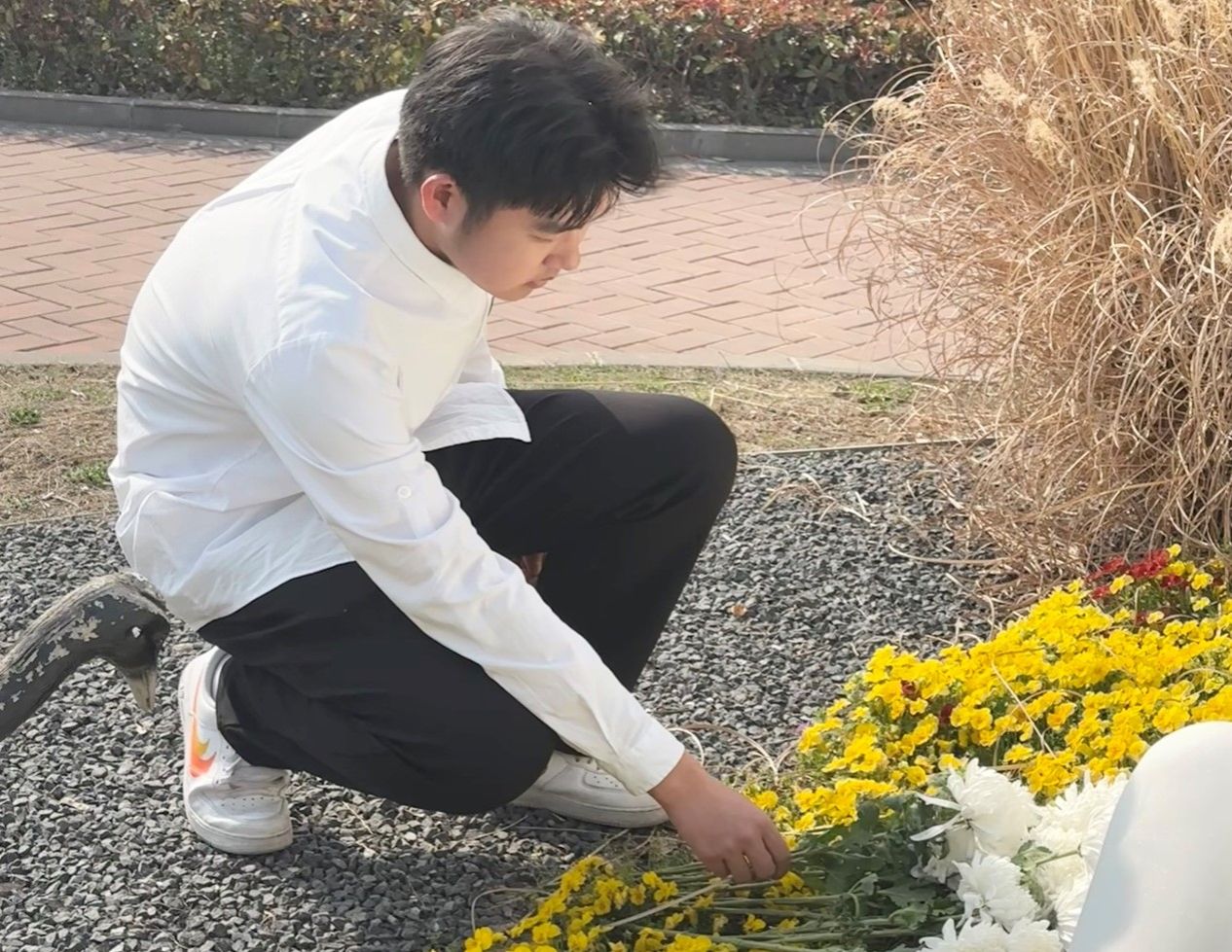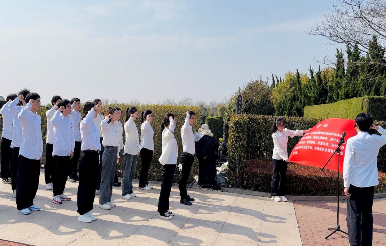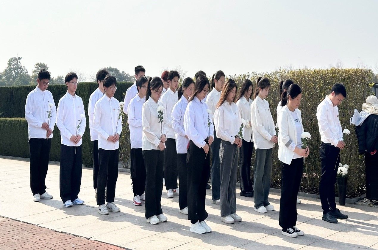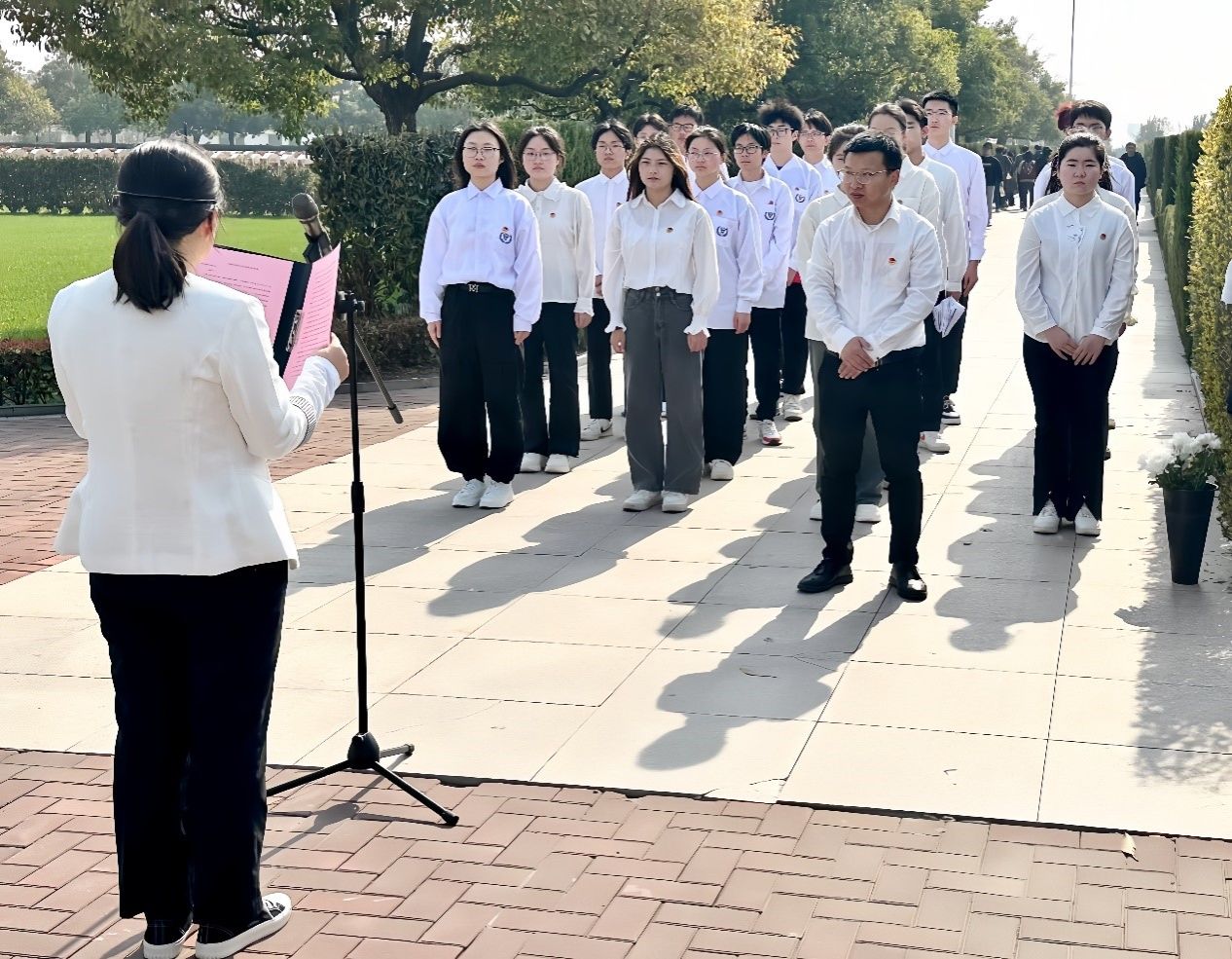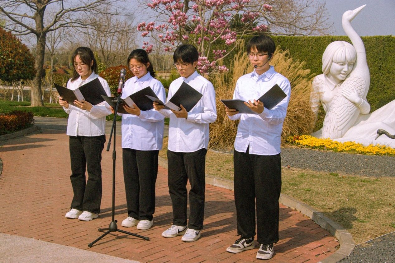活动中,全体师生统一着装,排列整齐,庄严肃立,聆听陵园工作人员对徐秀娟烈士的生平事迹介绍,感悟“鹤魂精神”的磅礴力量;学生代表深情朗诵诗歌《一个真实的故事》,向徐秀娟烈士表达了浓浓的哀思之情;B统计231班班长张利军带领全体师生重温湿地保护志愿者誓词,铿锵有力的誓言表达着广大团员青年对徐秀娟烈士的深切缅怀和传承“鹤魂精神”的坚定决心。随后,全体师生依次走到徐秀娟纪念雕像前敬献鲜花并瞻仰烈士,深情缅怀为驯鹤事业而献出年轻生命的徐秀娟烈士。