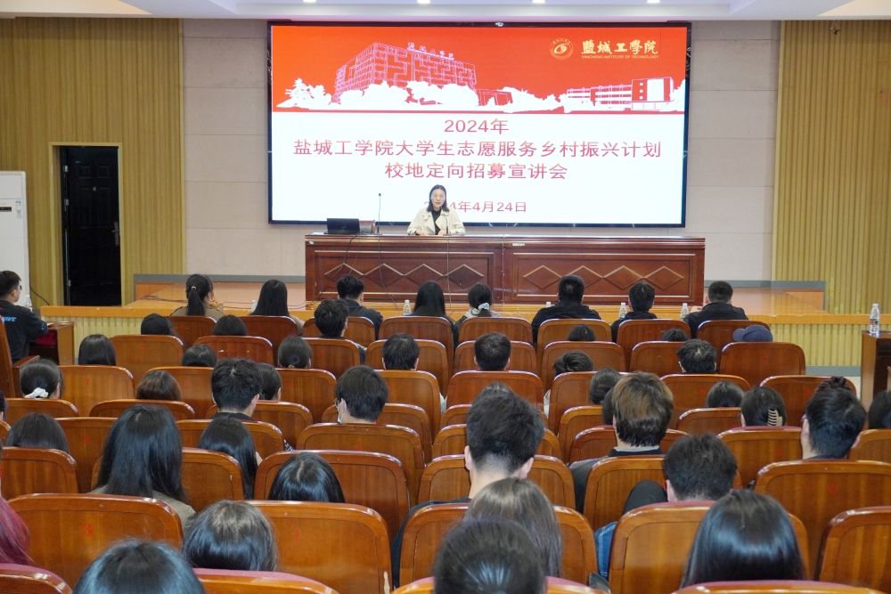 为落实《2024年江苏大学生志愿服务乡村振兴计划实施方案》,加深广大青年对乡村振兴计划的了解,鼓励青年学生积极报名参加乡村振兴计划,4月24日下午,校团委在希望大道校区举办2024年江苏大学生志愿服务乡村振兴计划(校地定向)招募宣讲会。活动邀请了东台团市委、盐都团区委、亭湖团区委乡村振兴计划项目办进行宣讲,校团委老师、各二级学院拟报名参加同学等180余人参会。会议由校团委副书记方璇主持。