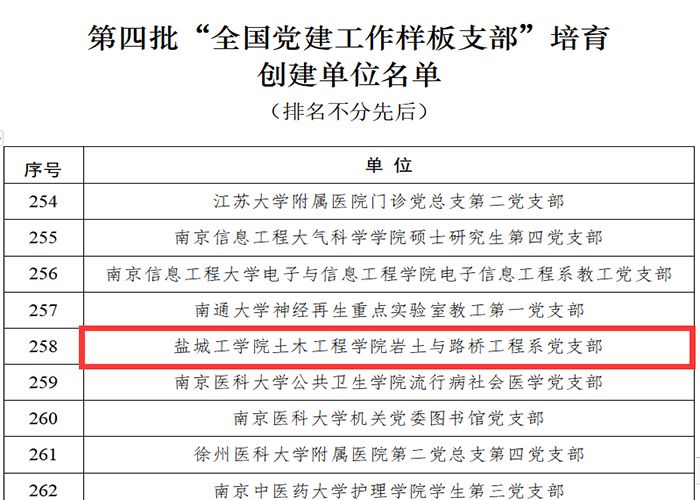 近日,教育部办公厅公布了关于第四批全国党建工作示范高校、标杆院系、样板支部培育创建单位名单,我校土木工程学院岩土与路桥工程系党支部入选“全国党建工作样板支部培育创建单位”,标志着土木工程学院在国家级党建工作品牌培育创建工作中取得新突破。