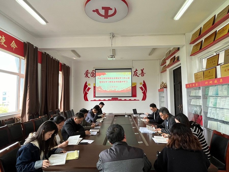 5月6日上午,汽车工程学院开展党纪学习教育专题读书班集中学习,学院党总支书记杨军主持并作领学发言,党总支理论学习中心组全体成员参加学习。