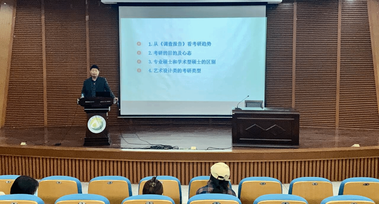 钱峰以《艺术设计考研趋势分析》为题作考研指导讲座。他结合《2024全国研究生招生调查报告》中的相关数据,分别从近年来考研形势变化、考研目的及心态、学硕与专硕的区别、艺术设计类考研类型等四个方面进行详细解读。他以学院近年成功上岸毕业生为例,建议学生根据自身情况进行理性定位,选择适合自己的院校和专业,脚踏实地、认真备考,并预祝大家成功上岸。