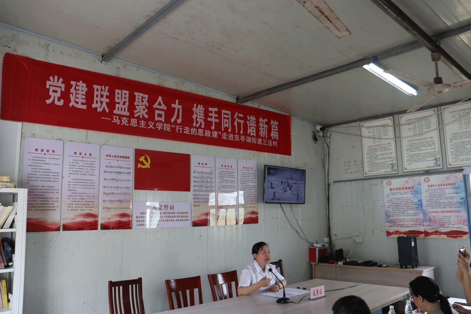 为深入学习贯彻党的二十大精神,进一步贯彻落实习近平总书记关于党的建设的重要思想,落实新时代党的建设总要求和新时代党的组织路线,5月20日上午,马克思主义学院一行14名党员教师走进盐城市亭湖区东亭湖街道三洼村开展“党建联盟聚合力 携手同行谱新篇”结对共建活动。三洼村党总支书记仓定华、副书记袁海勇出席。马克思主义学院院长、党总支书记包雅玮,副院长赵迎华、教工二支部书记郁海波及部分党员同志参加。仓定华主持。