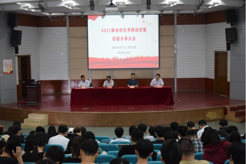 5月22日下午,材料科学与工程学院在北校区知达楼五四报告厅召开2021级本科生考研动员暨经验分享会。学院党委书记唐浩、院长罗驹华、副院长诸华军出席会议,团委副书记王俊、大三年级辅导员、2020级学生代表及2021级全体学生参加。会议由党委副书记朱凌主持。