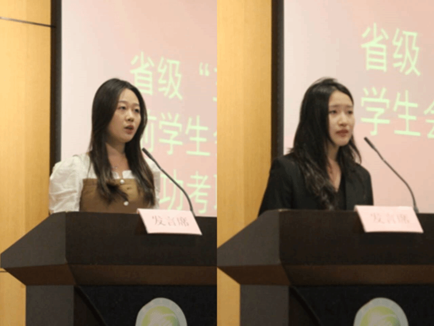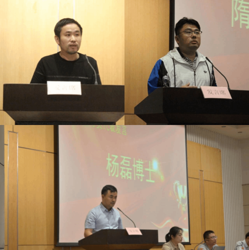 杨磊、隋延鸣、陈小冬三位老师分别介绍了自己在做辅导员、指导学生选择考研学校和导师等方面助力学生成功考研的感受和体会,提醒同学们要明确目标,从自身实际出发,积极参与导师科研,打好专业基础。成功上岸的大四同学吉萌和大三代表王锦茵先后上台发言。