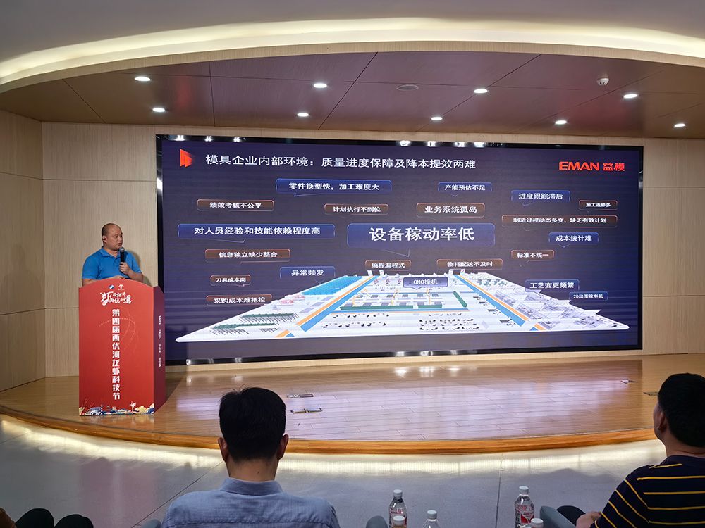 曹天赐作题为“卓越模具工厂数字化升级规划及落地案例分享”的主题报告。他以数字化模具工厂的提质、降本、增效为主题,分享了从数字化工具/系统的信息共享到模具工厂的设计、编程、工艺、加工、仓储、物流和装配等流程升级,再到以APS为核心的快速响应和精益生产以及高效协同化制造,最终借助工业互联网、5G及AI等技术实现模具工厂的智能化决策等方面的深厚工程积累。