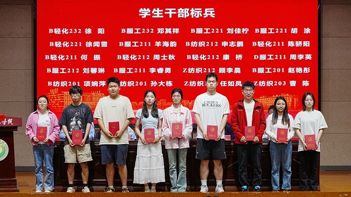 学生代表2024年省三好学生B纺织212班吕茂朴同学、2024年省优秀学生干部B轻化211班何振同学、考取东华大学硕士研究生B服工202班史恬运同学以及2023年江苏高校青年志愿服务项目金奖获得者D服工211班杨盈盈同学依次上台发言。四位同学分别从生涯规划、学习、工作、考研升学、学科竞赛、社会实践等方面进行经验分享。他们以切身体会,鼓励同学们要珍惜时间、把握机会、勤于学习,不断夯实自身专业知识和专业技能;躬身实践,努力锤炼实干本领,奋力谱写纺服盐粒子的靓丽华章;踔厉奋发、笃行不怠,让青春在热烈奋斗中绽放绚丽之花。