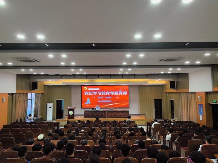 为进一步深化对加强党的纪律建设重要性的认识,准确把握党纪学习教育的目标要求,6月6日下午,纺织服装学院在南校区机械馆报告厅开展党纪学习教育专题党课,学院党总支书记宋孝浜作题为“开展党纪学习教育,以铁的纪律护航党的事业”的专题辅导报告,学院全体教职工、学生党员、发展对象、部分积极分子参加会议。