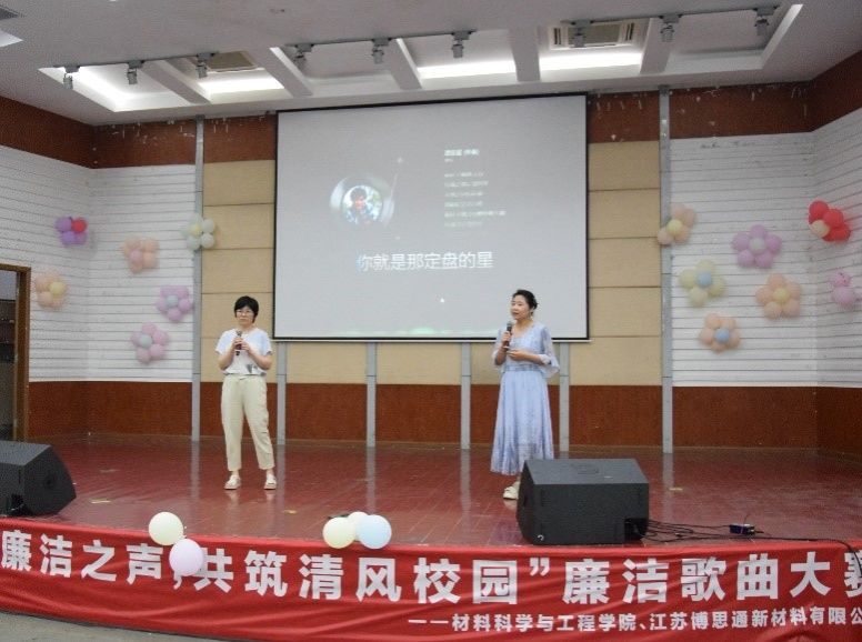 为了进一步贯彻落实党纪学习教育要求,弘扬廉洁文化,加强师生的廉洁自律意识。6月12日下午,材料学院在知达楼五四报告厅举办了廉洁歌曲大赛,材料学院党委书记唐浩、院长罗驹华及江苏博思通新材料有限公司企业代表出席。