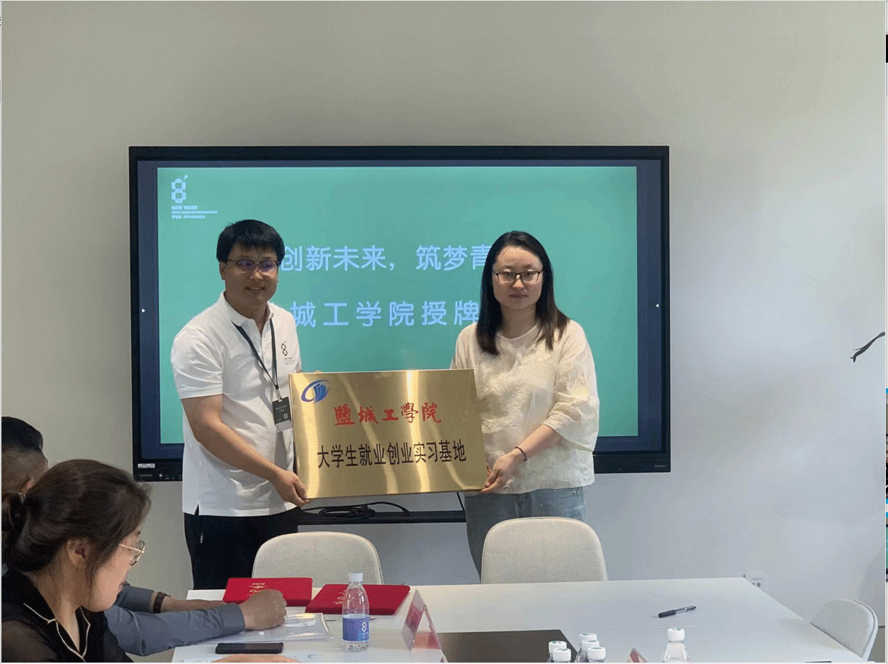 姜华与园区运营负责人苏凡博签署了《就业实习基地共建协议》,并进行就业创业实习基地授牌仪式。