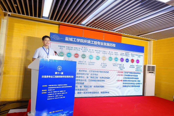7月12至14日,由中国环境科学学会、环境类专业认证委员会和教育部高等学校环境科学与工程类专业教学指导委员会主办的第十一届环境类专业工程教育教学改革研讨会在青岛召开,我校作为承办单位之一承办了“创新型+应用技术型人才培养模式与教学改革创新”分会场,由我校环境科学与工程学院院长陈天明教授、环境类认证专业委员会委员侯浩波教授召集。会议邀请了包括苏州科技大学李大鹏教授、西安建筑科技大学张海涵教授等10位专家介绍了10所高校在“创新型+应用技术型”人才培养模式与教学改革创新方面的经验。陈天明主持分会场并作题为“地方高校创新型+应用技术型人才培养模式改革及专业内涵建设探索与实践”的报告,介绍了盐城工学院在“创新型+应用技术型”人才培养方面的做法及在环境类专业的建设成效。