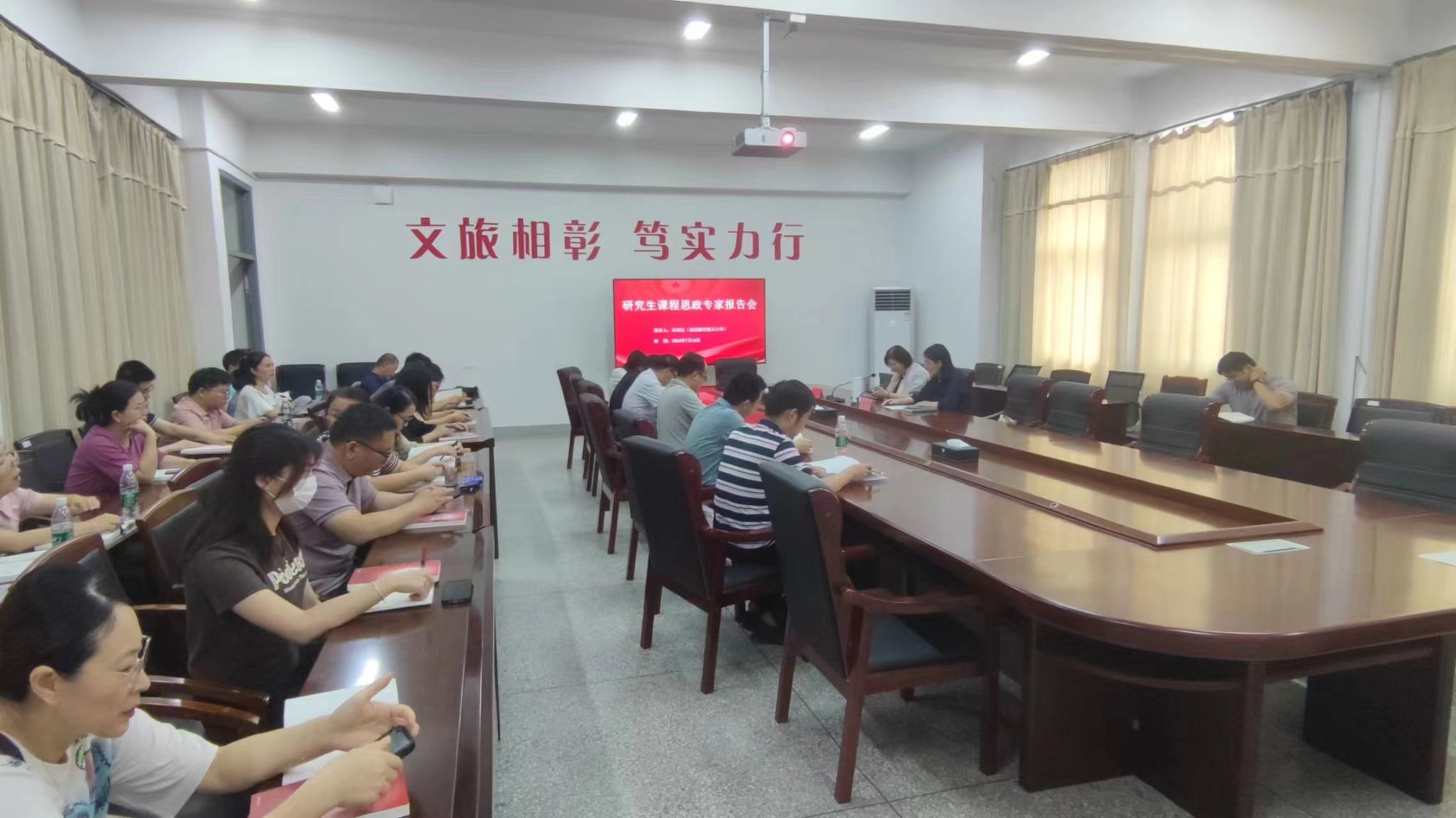 为进一步加强研究生课程思政建设,7月19日,研究生院特邀南京航空航天大学博士生导师冯绍红教授作题为《研究生课程思政教育理论与实践》的专题报告。研究生院院长许伟主持报告会,学校各学位点导师、马克思主义学院教师及研究生教改与质量提升工程项目负责人等40余人参加。