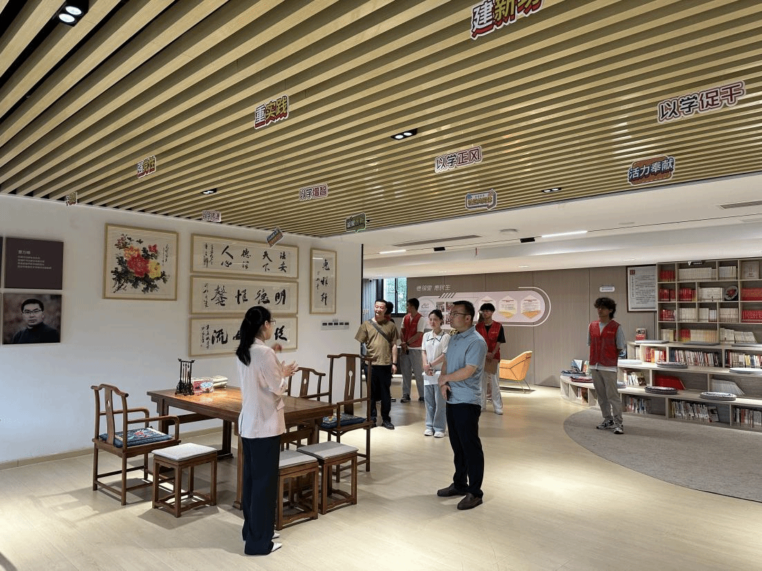 随后,学院一行来到亭湖大洋湾读书社,亭湖区南洋镇新洋村党总支副书记董茂友等热情接待。会上,叶禎菲与读书社社长陈羌现场签署《盐城工学院大学生实践基地共建协议书》,并举行挂牌仪式。双方还就如何深化后续合作进行了深入交流。