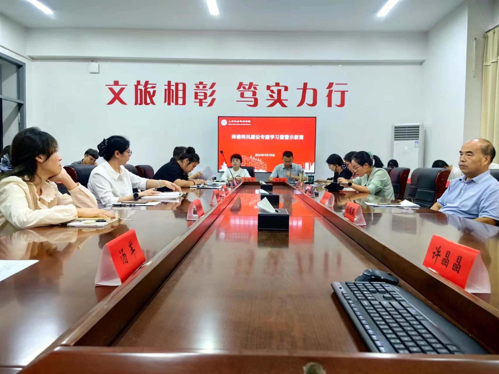 9月25日下午,在希望大道校区仁和楼A304会议室,人文学院开展师德师风建设专题学习暨警示教育。会议由学院党总支书记何登溢主持,学院全体教职工参加会议。