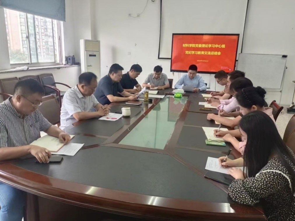 9月25日上午,在建军东路校区知达楼B306会议室,材料学院党委理论学习中心组举行9月份专题学习会暨党纪学习教育总结交流会,党委书记唐浩主持,理论学习中心组全体成员参加。
