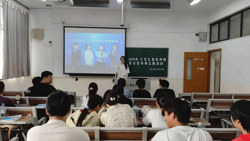活动期间,学院分年级精准施策,精心策划了一系列丰富多彩的宣传教育活动。9月15日晚,学院以班级为单位,集中组织大二、大三等570余位同学观看了“千万师生同上一堂网络安全教育课”。通过生动的案例和专业的分析,师生们对网络安全的重要性有了更加深刻的认识。B海洋234班的郭欣怡同学表示,此次课程让她深刻认识到网络安全无小事,必须时刻保持警惕,从我做起,共筑安全防线。