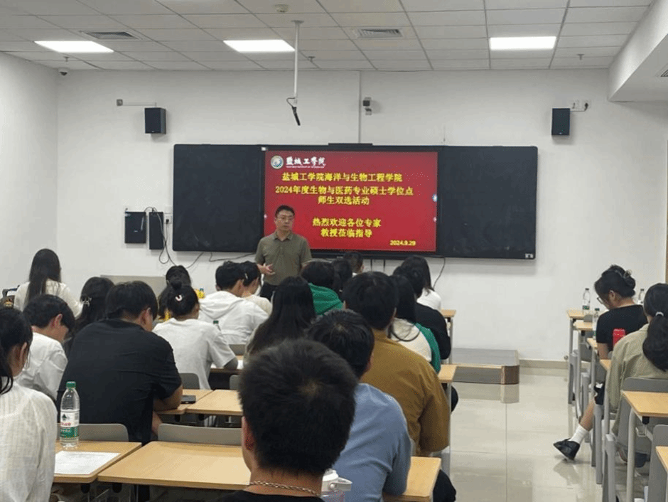 9月29日下午,海洋与生物工程学院2024级硕士研究生与导师双选会在盐龙湖先进技术研究院教学楼401教室举行。会议由学院副院长齐志涛主持,党总支副书记、纪检委员孙新华,导师代表赵卫红教授、魏畅副教授、江凤娟博士和张楷歆博士、研究生秘书陈小冬和潘明珠,以及全体2024级研究生参加。