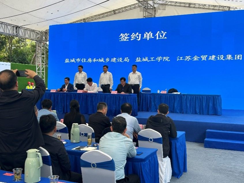 我校土木工程学院受邀参加会议。院长王照宇从专业历程、科研成果、社会服务等方面全面介绍了我校智能建造专业方向的建设思路、专业定位、培养目标、产教融合等情况,扩大了我校高水平应用型人才培养示范效应。会上,王照宇代表学校与盐城市住房和城乡建设局、江苏金贸建设集团签订政校企三方合作协议。工程管理专业负责人刘宏伟教授,建筑系主任王进教授和青年教师孟逊等参加。
