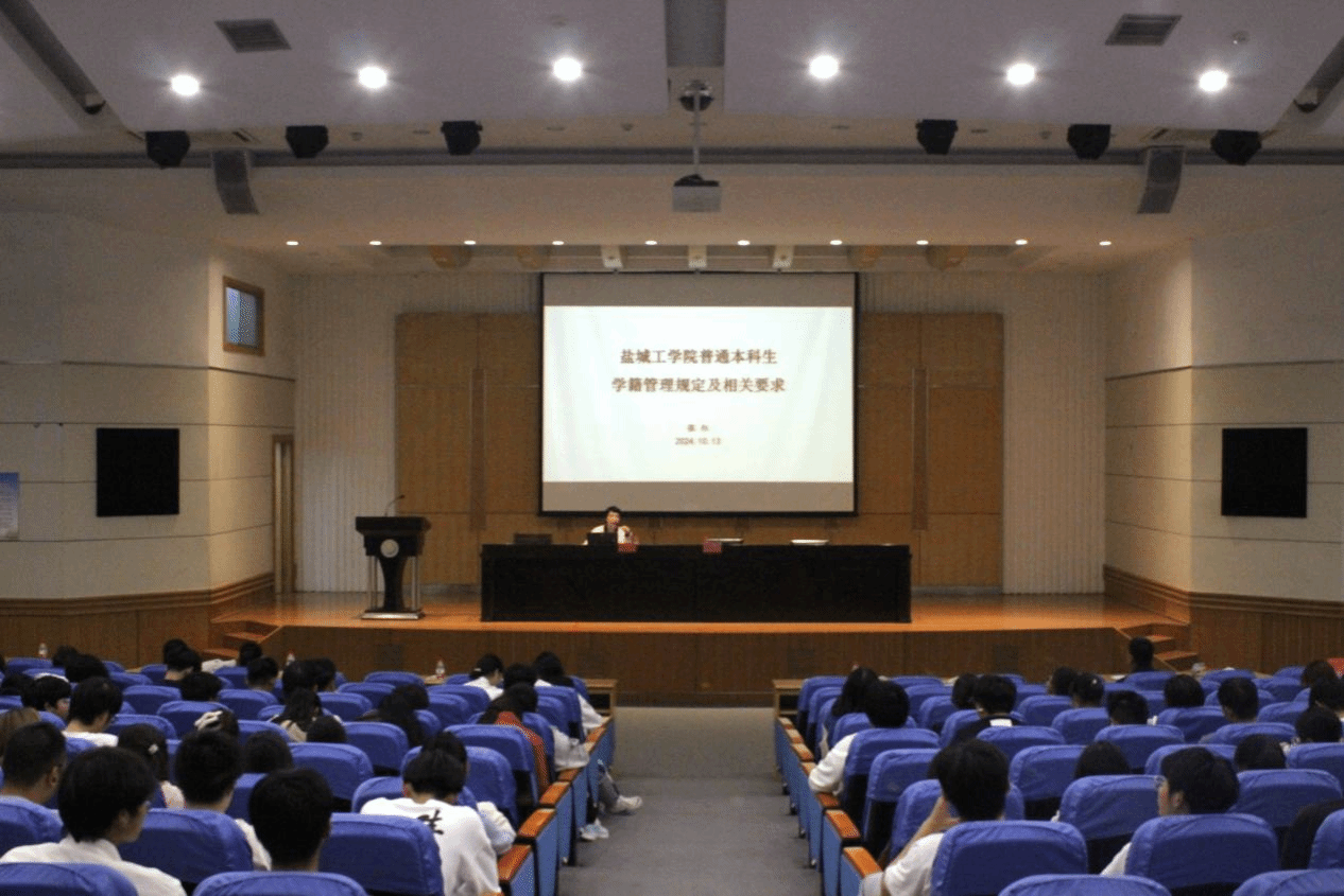 宋永春围绕学业、毕业和警示三个方面开展新生学籍管理教育,详细介绍了《盐城工学院学生学籍管理规定》《盐城工学院学士学位授予办法》《盐城工学院学业预警管理办法》文件中关于学分、绩点、学位授予、学业预警的具体要求。她强调,大一新生务必认真学习学籍管理相关规定,充分认识考试作弊的“附加成本”,准确理解本科生培养方案,确立学习目标,求真务实,争做符合时代要求的应用型高水平人才。