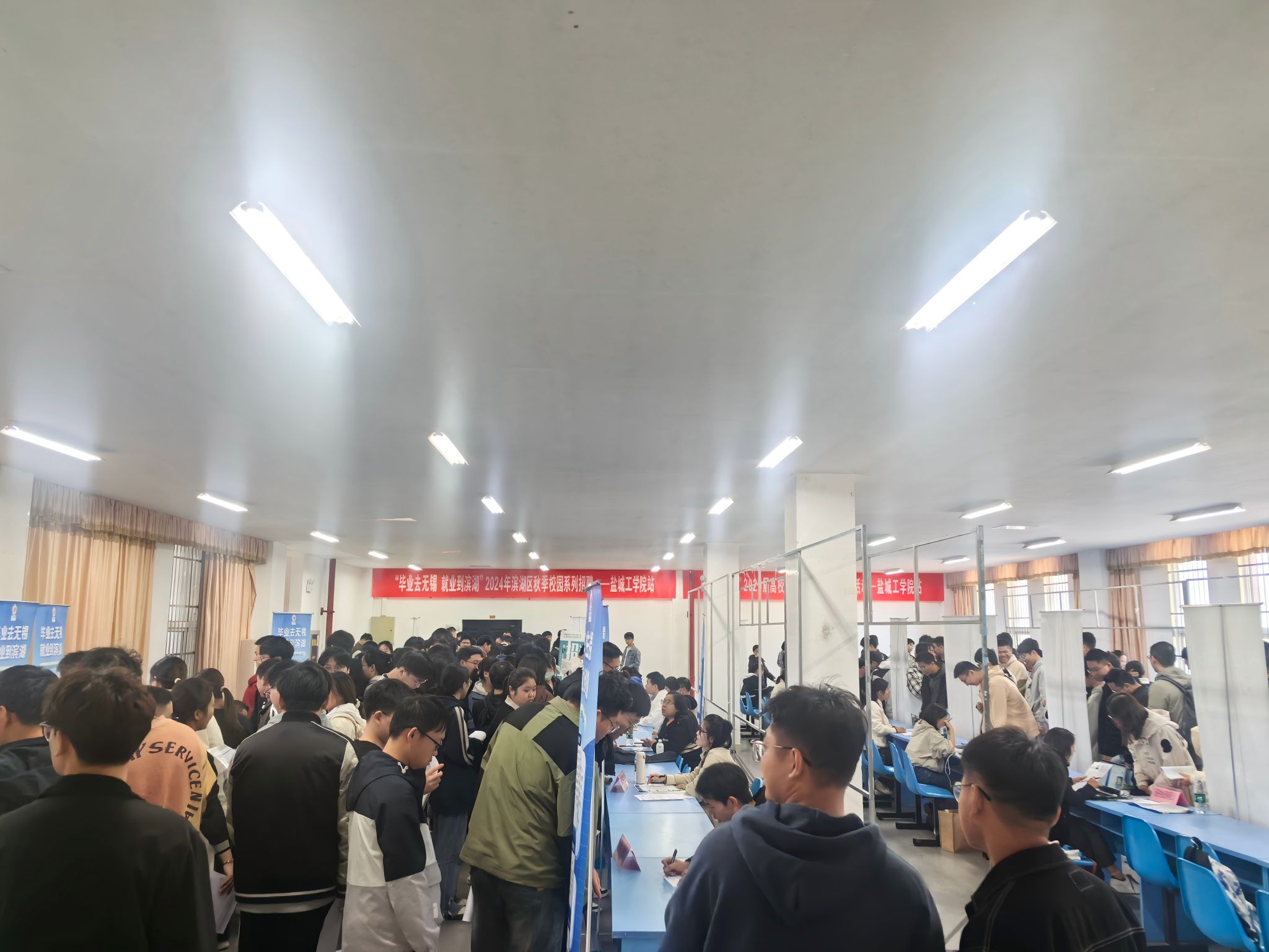 为持续推进2025届毕业生就业工作,10月24日下午,我校在希望大道校区大学生活动中心一楼就业市场举行“毕业去无锡 就业到滨湖”2024年滨湖区秋季校园招聘活动。