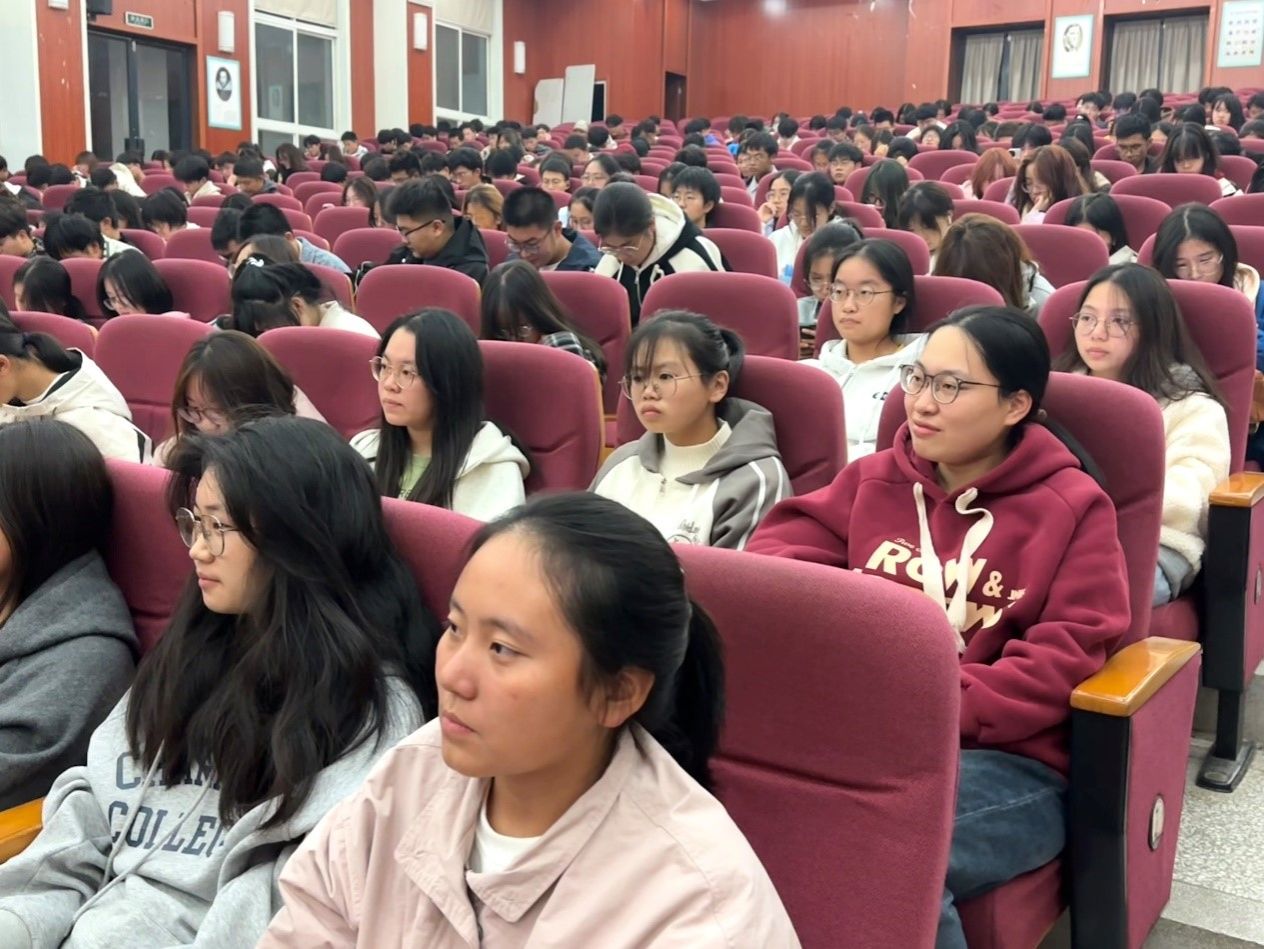 韦春华首先阐述了心理学的基本概念以及心理健康的多维度表现,强调了心理健康对于个人成长、学习及未来职业生涯的重要性。她细致分析了新生在入学初期可能遇到的各种不适应症状,包括但不限于学习压力增大、人际关系调整、生活环境变化等,让新生们意识到这些挑战是普遍存在的,无需过分焦虑。她分享了一系列实用且科学的策略,指导新生如何有效应对这些不适应,包括时间管理技巧、情绪调节方法、积极心态培养以及寻求帮助的途径等,鼓励新生主动适应新环境,勇于面对挑战。
