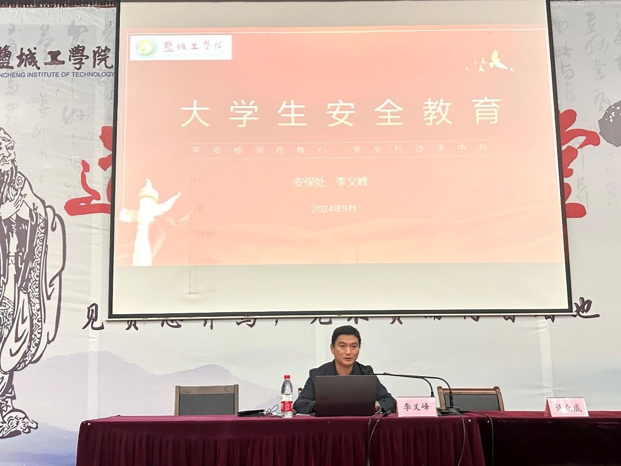 为进一步提高同学们的安全意识,提升自我保护能力,保护校园安全稳定,10月31日晚,汽车工程学院邀请校党委保卫部、人武部部长、安全保卫处处长李义峰为2024级全体新生开展入学安全教育专题讲座。学院党总支副书记丁德惠主持。