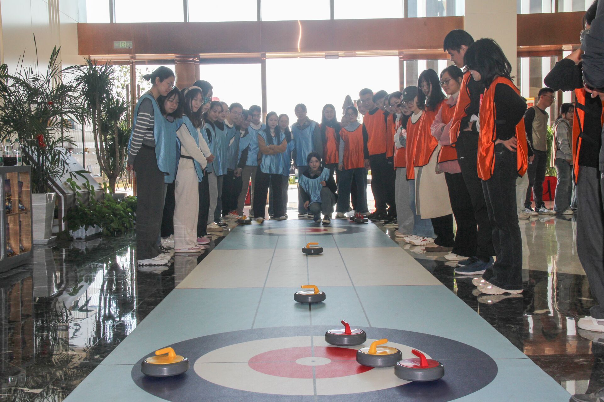 在“团队金字塔”环节,各队同学一起拉紧绳头来控制塔钩移动,用塔钩将一块块塔吊起搭好模型。让团队协作起来,分工互补,统一指挥,统一口令,统一行动,同一条心。在“旱地冰壶”环节,每场比赛两支队伍,每局每名球员可以投掷1次,双方队员掷完所有冰壶球,以场地上冰壶距离营垒圆心的远近决定胜负,每石1分,积分多者为胜,充分锻炼了同学们身体的柔韧性和对力量的控制能力。在“疯狂市场”环节,同学们进行了一场脑力的对抗,每个小组需在60秒的时间把代表1-30数字信息的30张卡片按照顺序交给教练,培养了队员们主动沟通的意识和全局观念。在“主题飞盘”环节,老师们也纷纷加入四支队伍,分别参加了“九宫格框”“掷准框”“打击网”“飞盘保龄球”四个环节,深刻体验了“盘不落地,永不放弃”的团队精神,充分展现了个人风采,更在团队协作中凝心聚力、力克难关。
