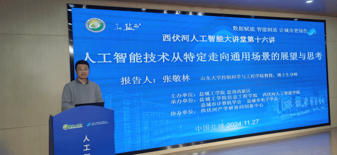 11月27日下午,在西伏河产学研协同创新中心一楼报告厅,清华大学电机系博士生导师,国家杰青获得者张品佳研究员应邀作题为《电机系统智能感知技术研究》的学术报告,山东大学控制科学与工程学院博士生导师张敬林教授应邀作题为《人工智能技术从特定走向通用场景的展望与思考》的学术报告,信息工程学院60余名师生参加。