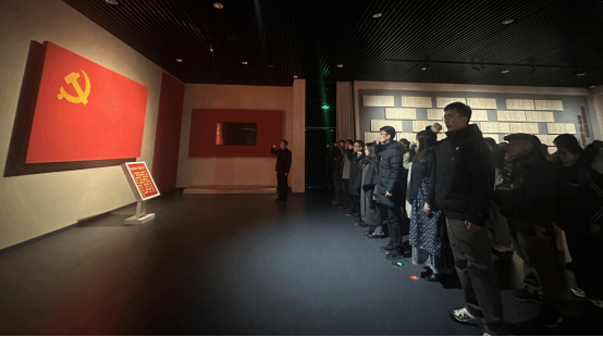 参观结束后,全体师生党员面对鲜红的党旗,庄重地重温了入党誓词。