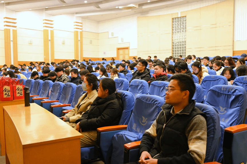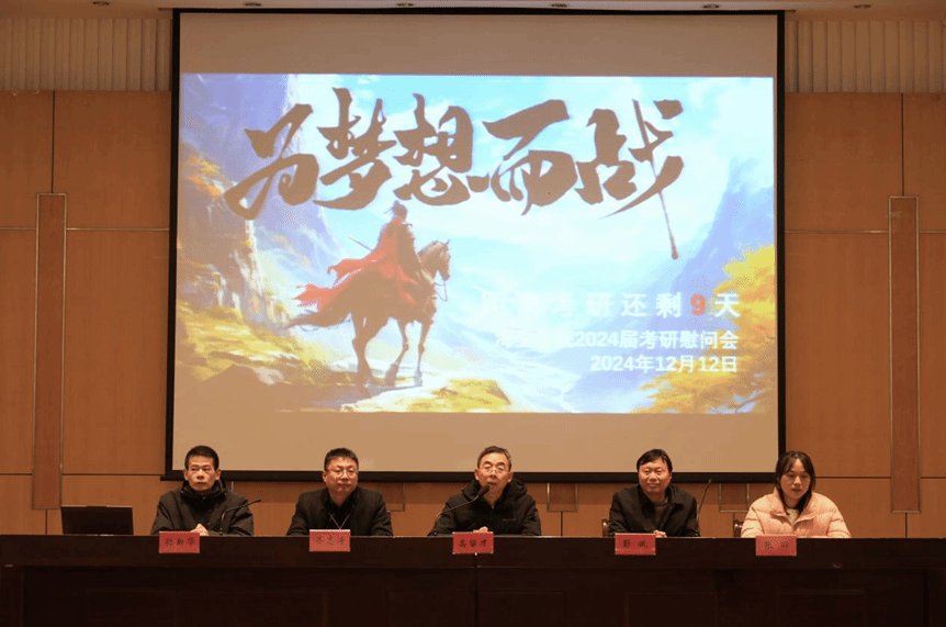 为鼓舞考研学子士气,缓解考前压力,坚定应考信心,12月12日晚,海生学院在北校区图书馆报告厅举办“为梦想而战”2025届考研慰问活动。党总支书记高留才主持,院长彭斌,副院长齐志涛、张丽,副书记孙新华出席活动,学工办负责同志、毕业班辅导员及学院2025届考研学生参加。
