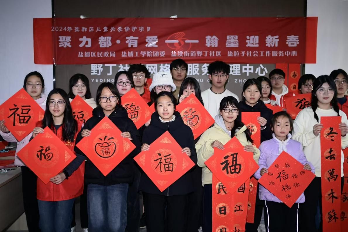 翰墨翩跹舞,暖意脉脉流。为弘扬中华优秀传统文化,深入贯彻习近平总书记对新时代广大青年志愿精神的要求,动员我校学子踊跃向社区报到,12月21日,校团委、校书法协会联合盐城市盐都区民政局、野丁社区党群服务中心、盐粒子社会服务中心开展以“翰墨迎新春”为主题的志愿服务活动。校团委学生组织及书法协会骨干成员等30余名学生参加活动。
