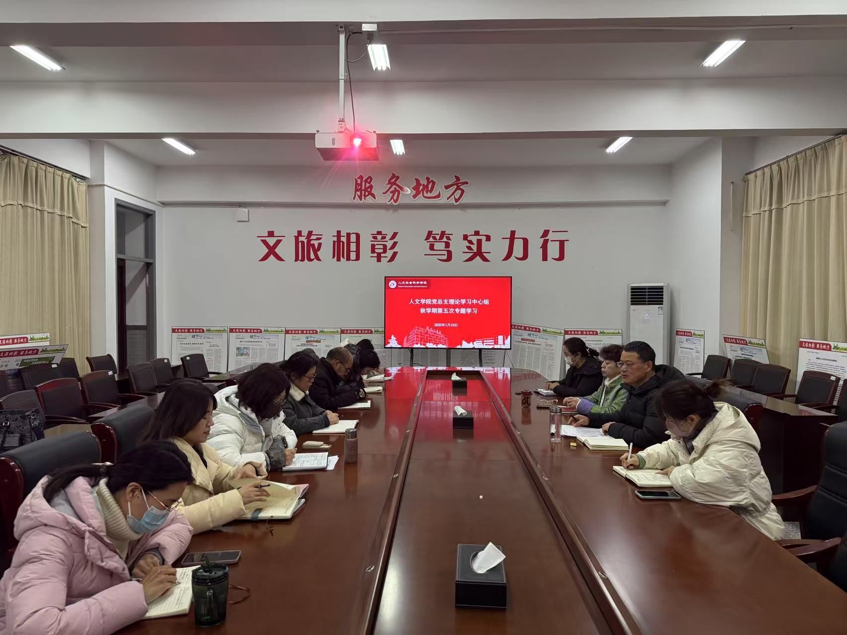 1月10日下午,在仁和楼A304会议室,人文学院党总支理论学习中心组召开2024年秋学期第五次集体学习会。会议由学院党总支书记何登溢主持,学院中心组成员参加。