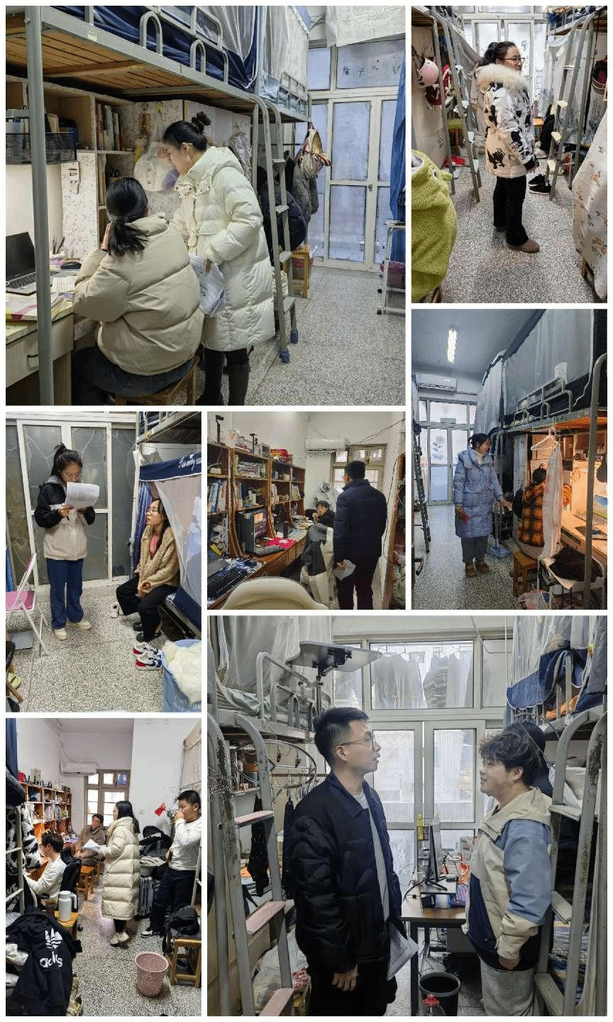 检查过程中,辅导员分别深入责任班级学生宿舍,了解学生们的学习、生活状况,重点排查学生宿舍内吸烟、使用违规电器、存放违禁物品等安全隐患,同时对宿舍矛盾、环境卫生等问题进行深入地了解和摸排。老师们与学生亲切交流,不仅认真倾听学生在新学期学习生活中的各类需求、意见和建议,还悉心提醒同学们要加强宿舍学风建设,严格遵守宿舍管理规定,时刻注意防火、防盗,做好宿舍卫生和个人卫生,共同营造安全、和谐、卫生的宿舍环境。