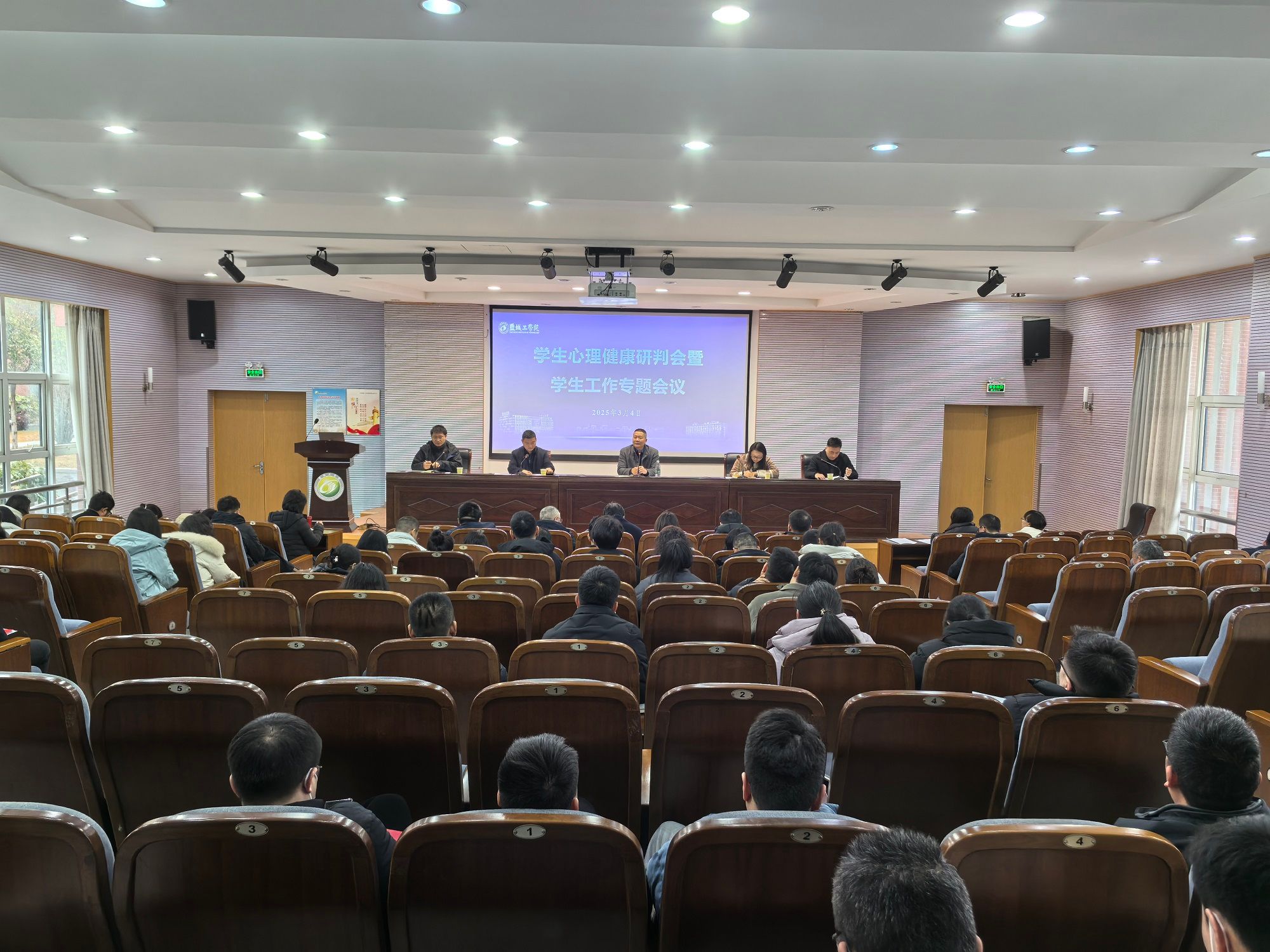 3月4日上午,在希望大道校区土木馆报告厅,学校召开学生心理健康研判会暨学生工作专题会议。学生处处长杨汉华主持。安保处、研究生院、后勤服务集团负责人,二级学院分管学生工作书记,学工办(副)主任、团委(副)书记,学生处、团委科级以上人员,公寓管理中心主任、全体专兼职辅导员等参加。