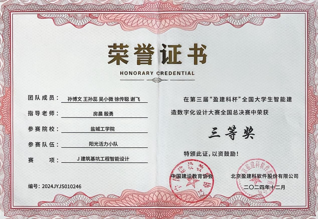 近日,中国建设教育协会公布了第三届“盈建科杯”全国大学生智能建造数字化设计大赛结果,土木工程学院组织两支队伍首次参赛,经初赛作品提交、决赛汇报答辩等环节,两支队伍分别获全国一等奖、三等奖。
