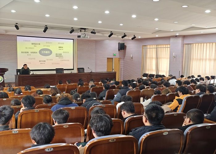 3月8日,在土木馆A206会议室和报告厅,土木工程学院联合“砼心苑”一站式学生社区举办以“破界重构——新时期建筑师的全周期价值升维”为主题的校友大讲堂活动。南通高新控股集团总设计主管曹辰辰、燕舞集团总师办副主任王贵东两位2007级建筑学专业校友应邀来校开讲。杰出校友、江苏金贸建设集团设计研究院院长卞竹青,土木工程学院建筑系主任王玉娟、骨干教师顾海燕、建筑学专业全体在校生等近200人参加。