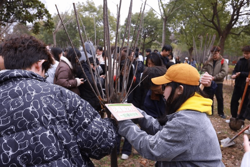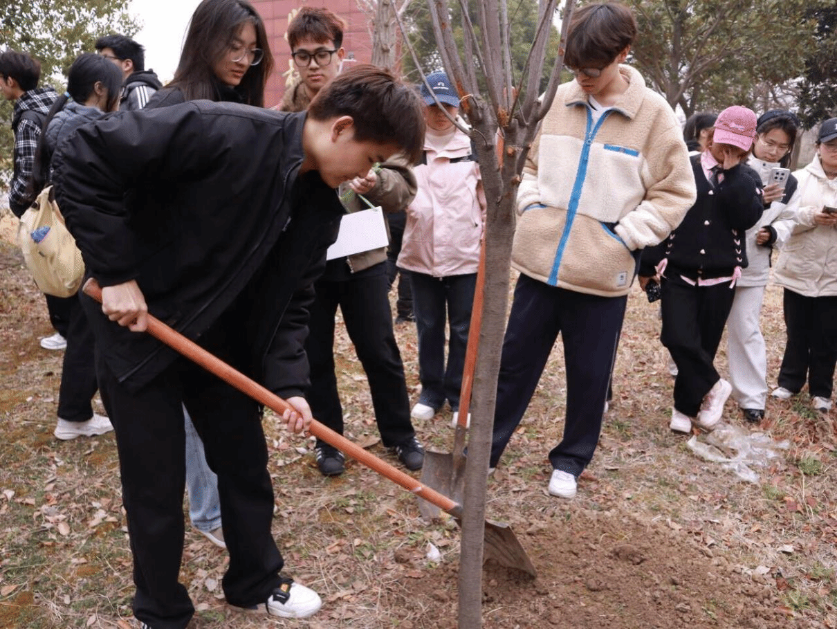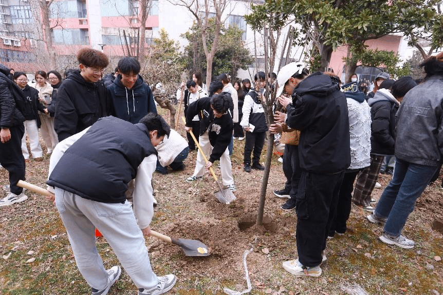 为进一步弘扬生态文明理念,在第47个植树节到来之际,设计艺术学院将劳动教育与生态德育有机融合,于3月12日中午在南校区润美楼前开展“‘绿’动未来·共植希望”植树节主题团日活动。2024级全体学生参加。