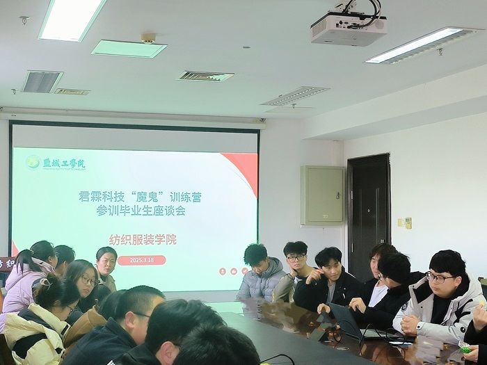 3月18日下午,纺织服装学院院长王春霞、纺织专业系主任林玲、轻化专业系主任葛元宇、毕业班辅导员王超、任晓慧及专业教师王丽丽、冒海燕、胡小赛、史超与20名参训学生齐聚会议室,共同参加君霖科技“魔鬼”训练营参训毕业生座谈会。会上,王春霞对学生的全程参与和成长给予了高度评价,希望同学们以此次训练营为起点,继续保持求知热情,将实践中的收获转化为未来发展的动力,并为他们的职业发展送上殷切寄语。参训学生均踊跃发言,积极分享训练营中的收获与感悟,其中,Z纺织212班的顾李晨同学提到:“企业提供的先进平台让我们接触到前沿技术,这对未来职业规划意义重大。”B轻化211班的刘根森同学表示,训练营的快节奏让他深刻体会到行业对效率和创新的高要求。赵天祥同学由于在配色项目表现优异,获得了企业领导的一致认可。衡永运、孙益鑫同学提到,工作中要积极主动、思维活跃,将学校里的理论知识与企业先进经验进行有机结合。学院此次座谈会为本次为期12天的训练营画上了圆满句号。